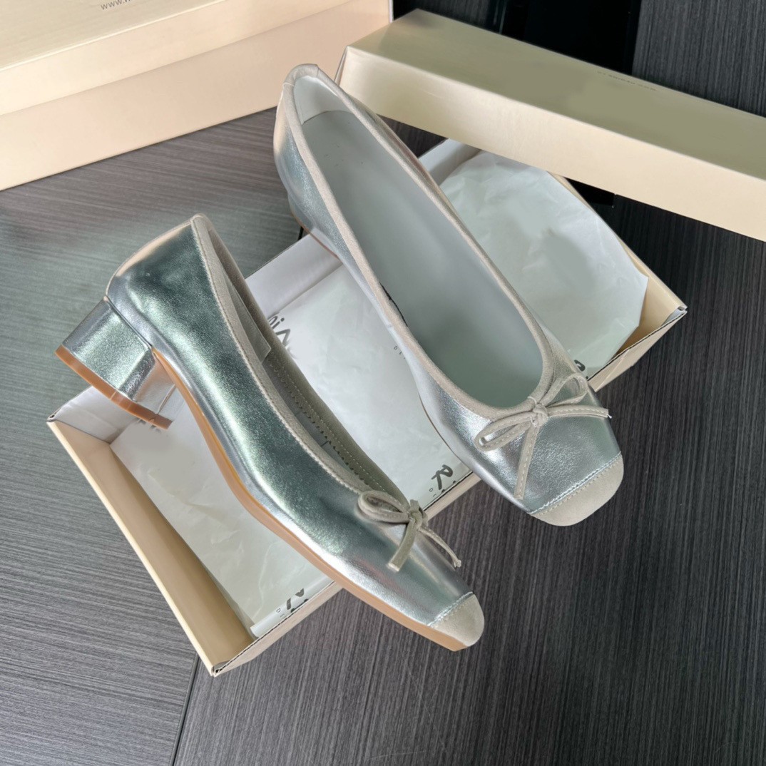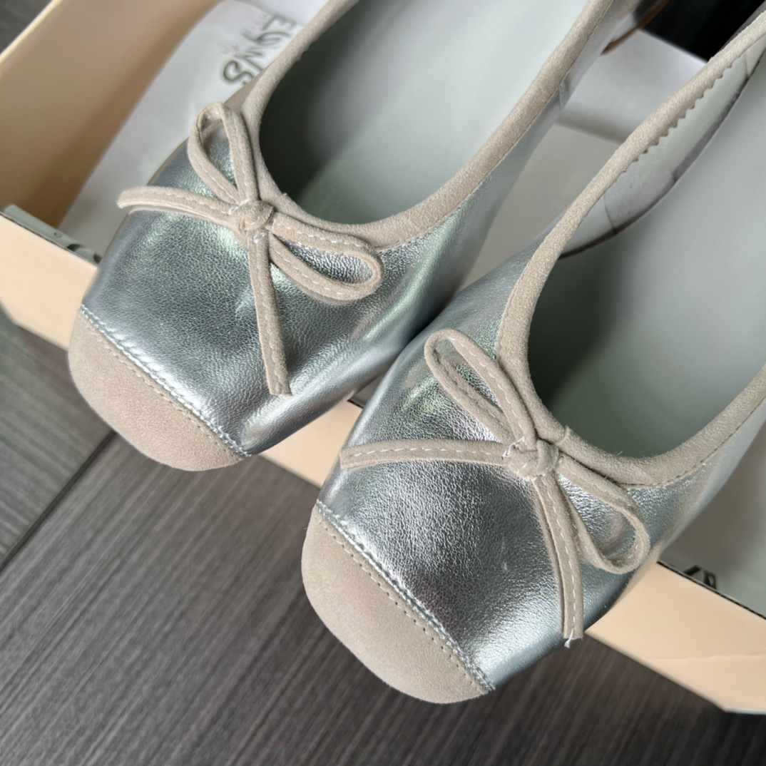 实物质感银好很好很软的一双芭蕾舞鞋 小羊皮搭配无港宝的设计和一体成型橡胶鞋底,整双鞋都非常柔和!