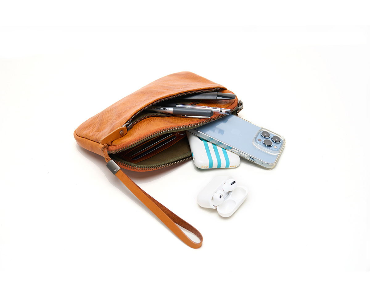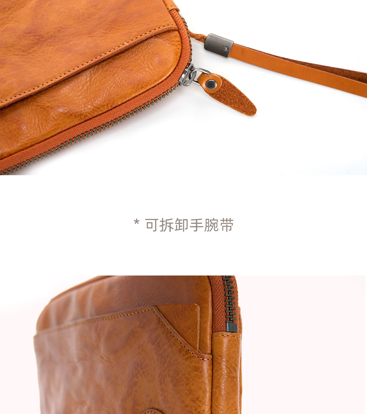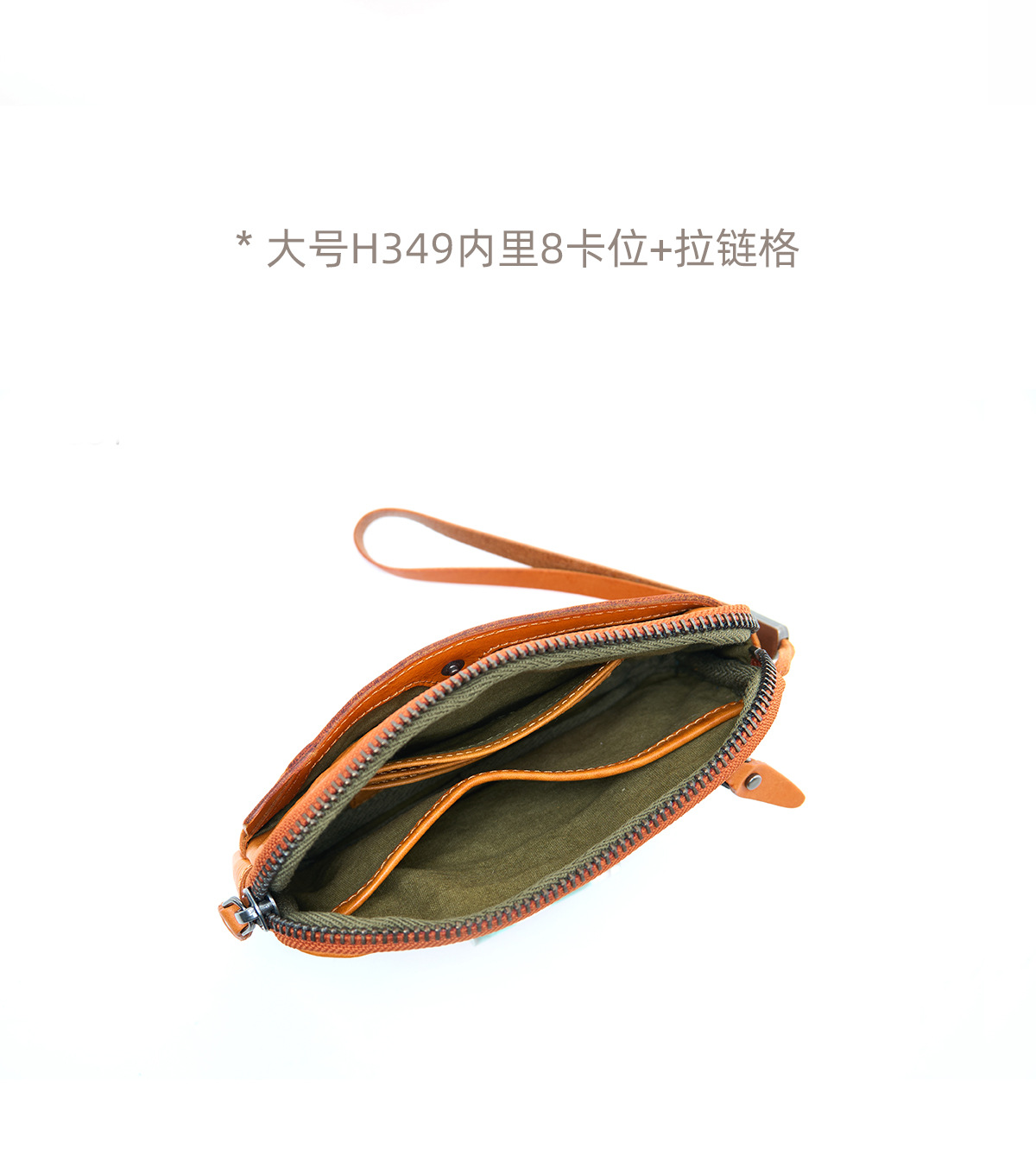 정품 가죽 긴 남성 지갑 빈티지 야채 태닝 첫 번째 레이어 소가죽 클러치 지퍼 지갑 핸들 휴대 전화 가방