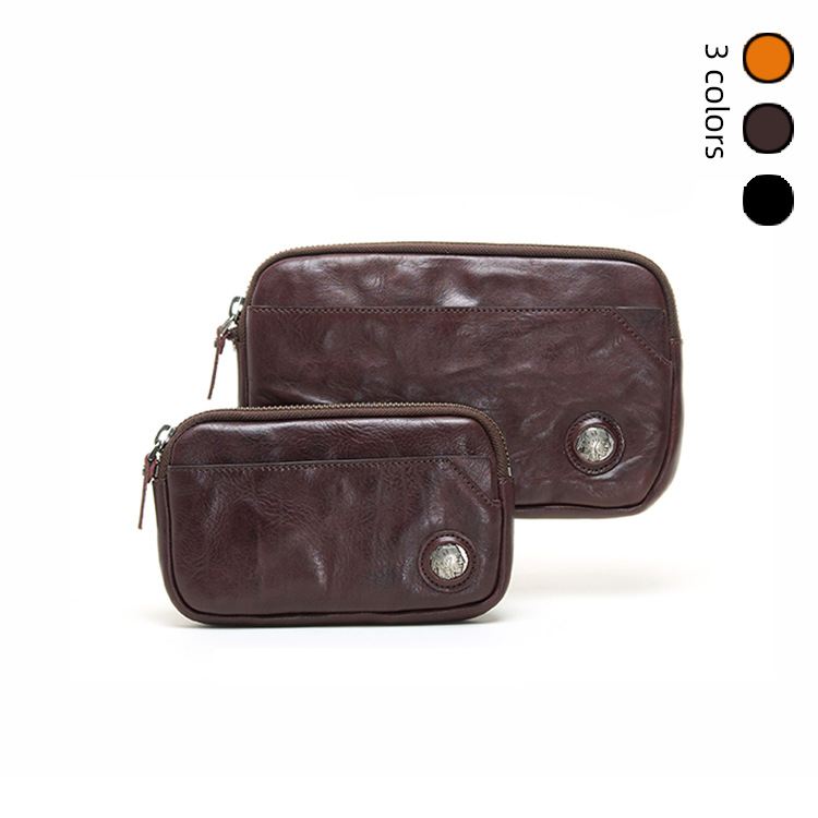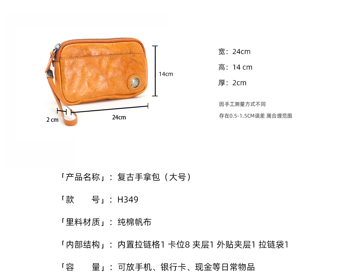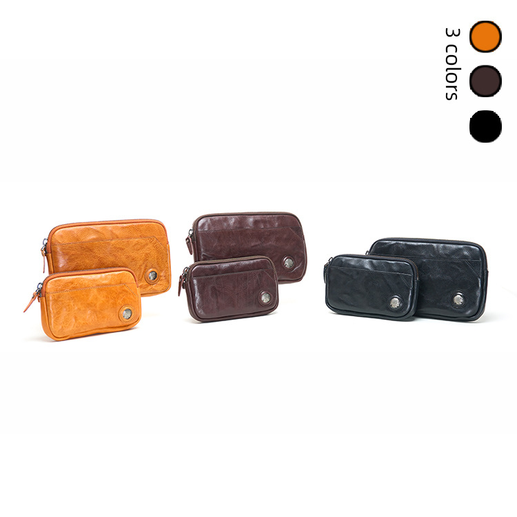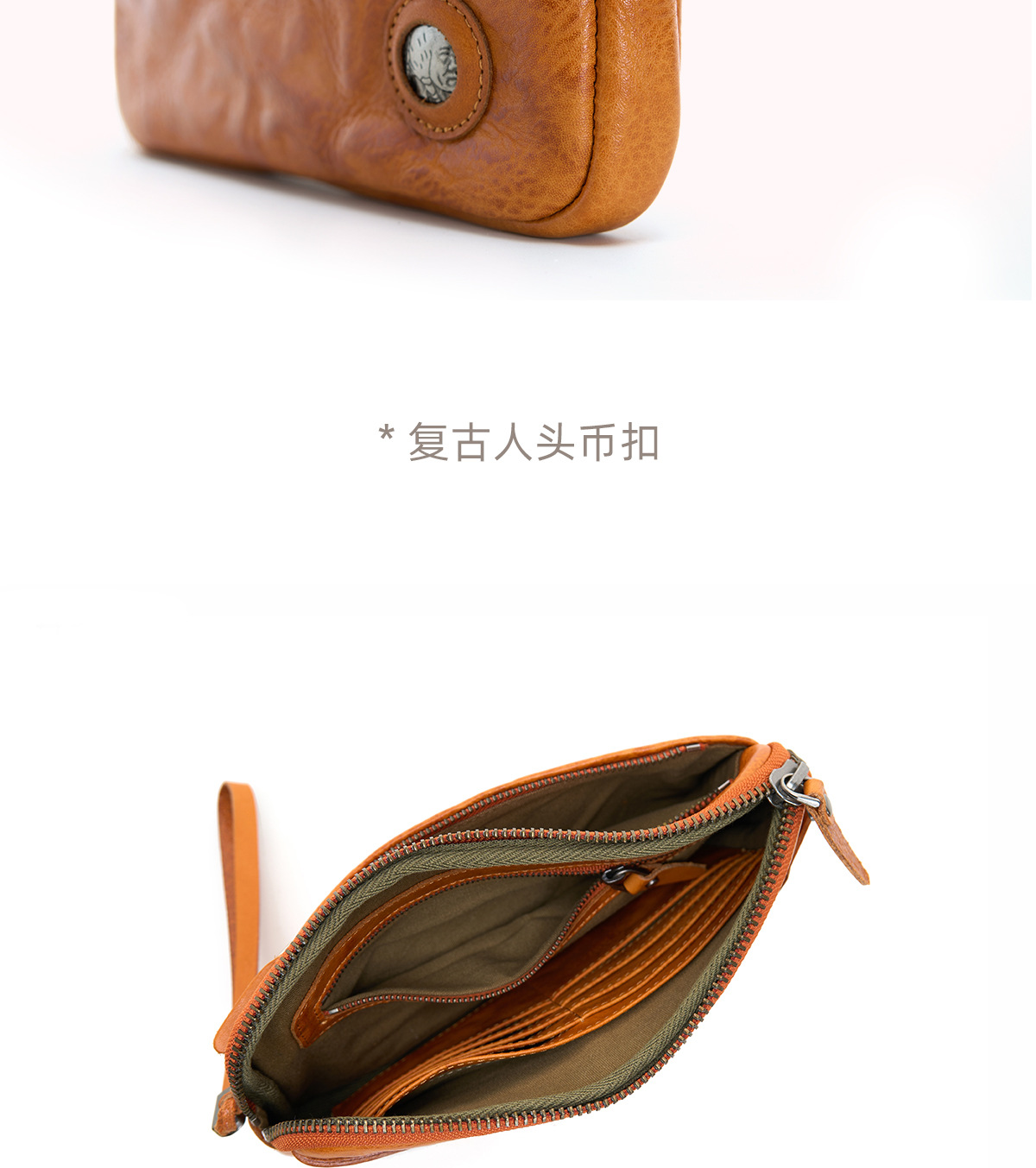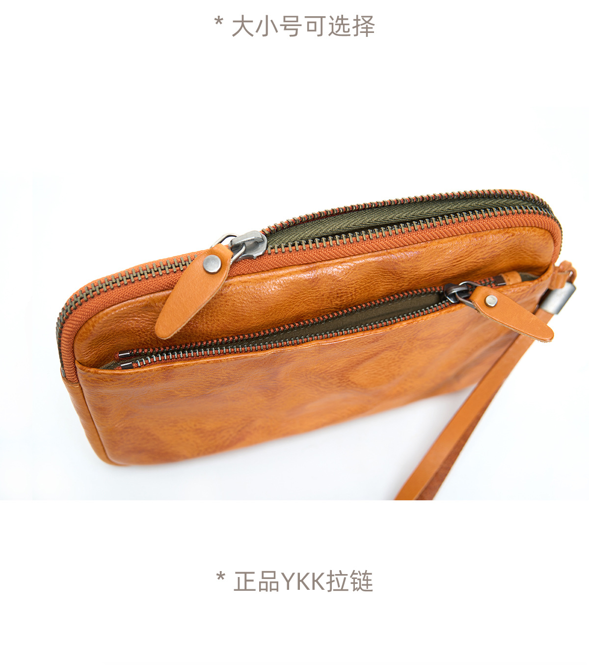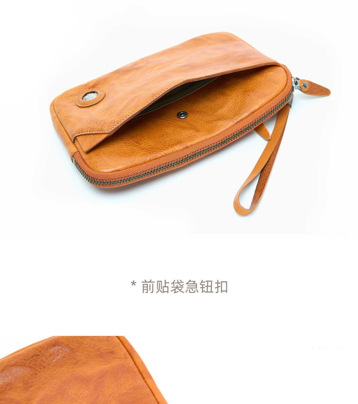 정품 가죽 긴 남성 지갑 빈티지 야채 태닝 첫 번째 레이어 소가죽 클러치 지퍼 지갑 핸들 휴대 전화 가방스토어 가기