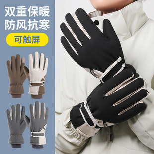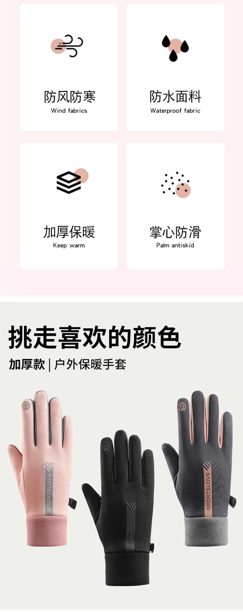 여성용 겨울 따뜻한 장갑, 터치스크린 사용 가능, 스포츠, 야외 활동, 운전, 미끄럼 방지, 벨벳 안감, 두꺼운, 방한, 방풍, 사이클링 장갑