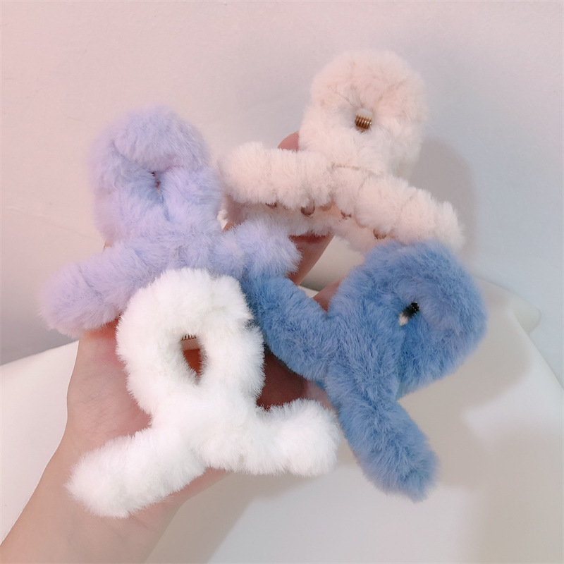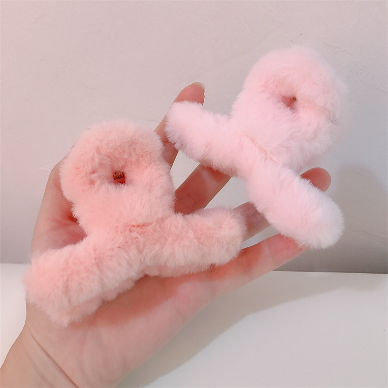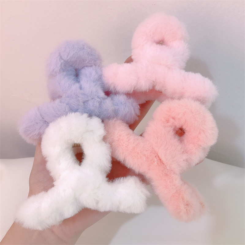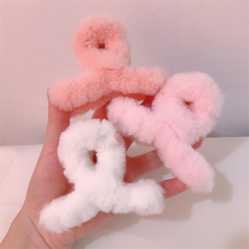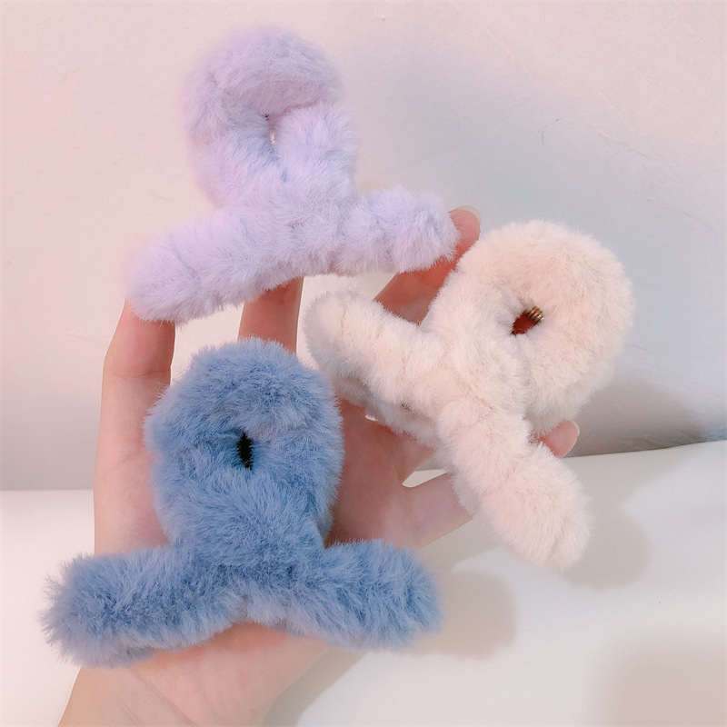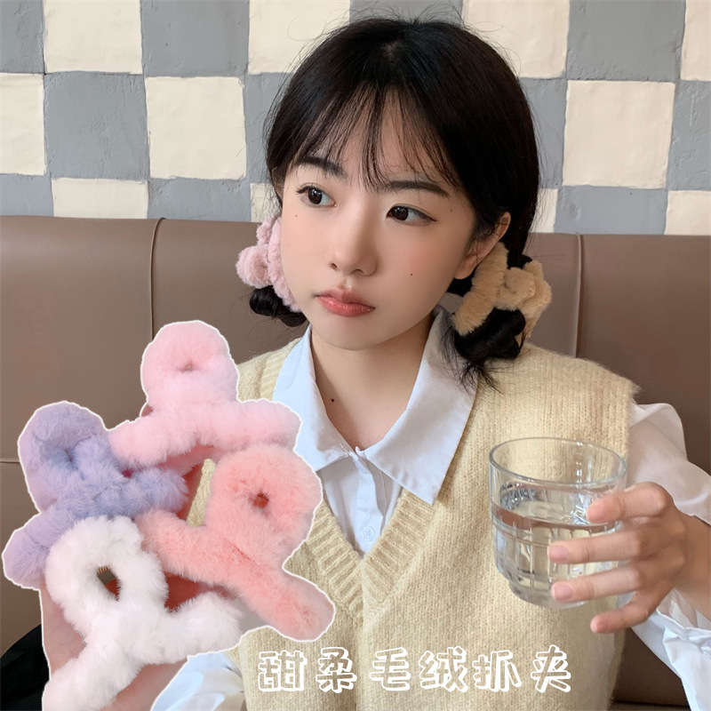 가을과 겨울 스몰 사이즈 그립 플러시 헤어 그립 백 헤드 헤어 클립 상어 클립 컬러 헤어 클립