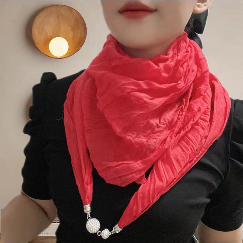 여성 패션 그라디언트 주름 실크 스카프 펜던트 마그네틱 버클 목걸이 가을과 겨울 따뜻한 목 보호 다기능 면 및 린넨 스퀘어 스카프