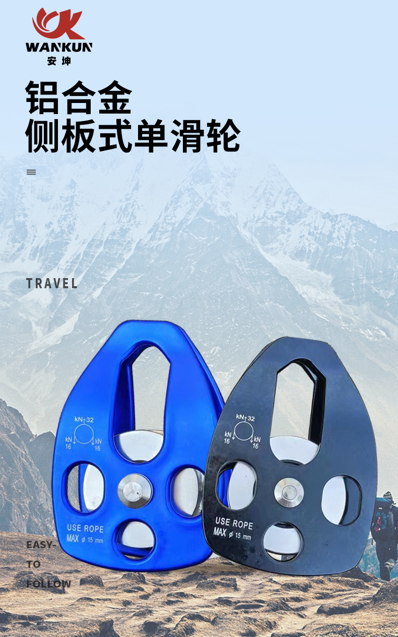 Ankun 모바일 사이드 플레이트 단일 도르래 야외 등산 로프 트랙 도르래 암벽 등반 내리막 운송 내 하중 대형 도르래