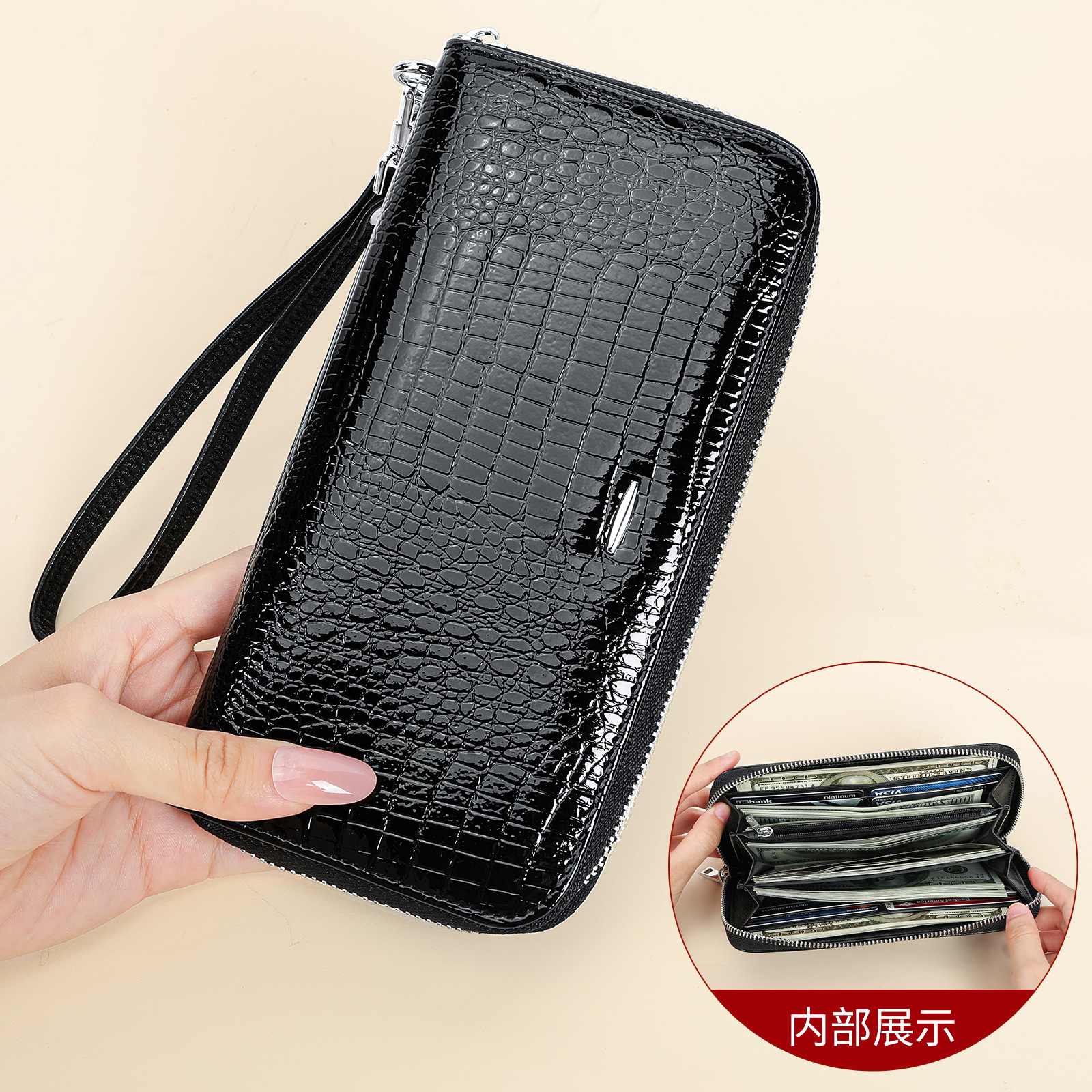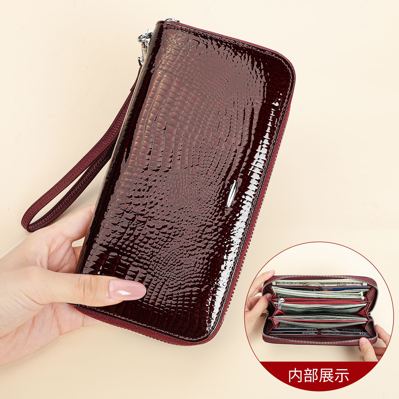 새로운 스타일 지갑 여성용 고급 오일 왁스 가죽 멀티 카드 대용량 트라이 폴드 가죽 지갑 여성용 크로스 보더 지갑스토어 가기