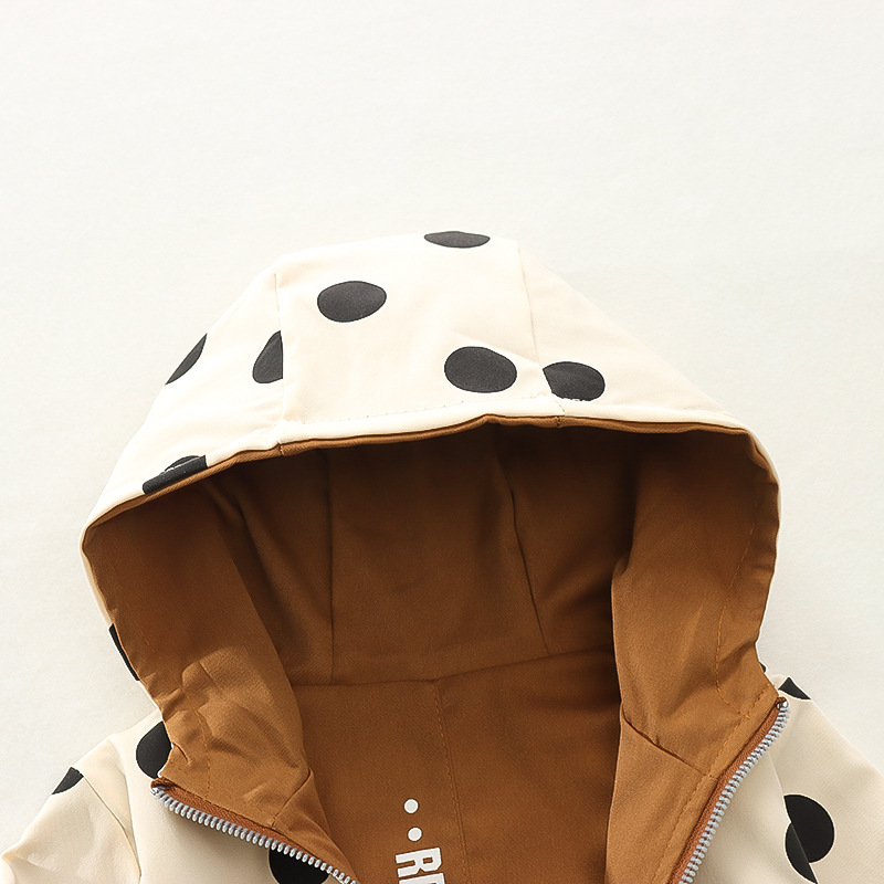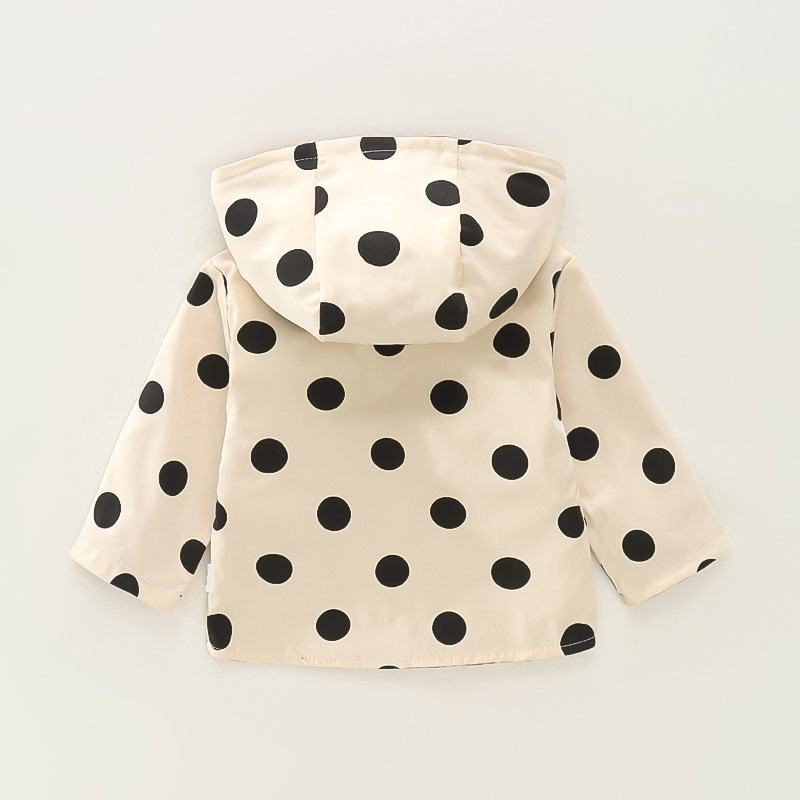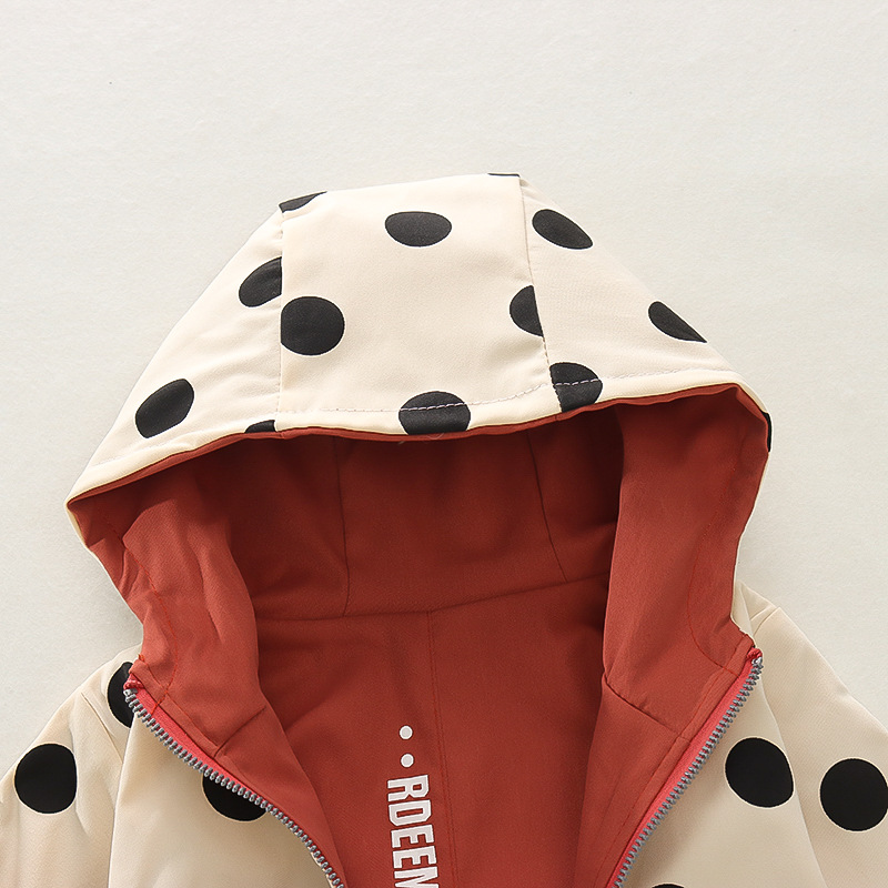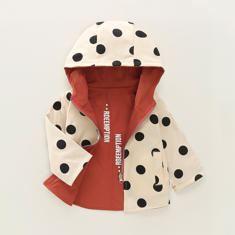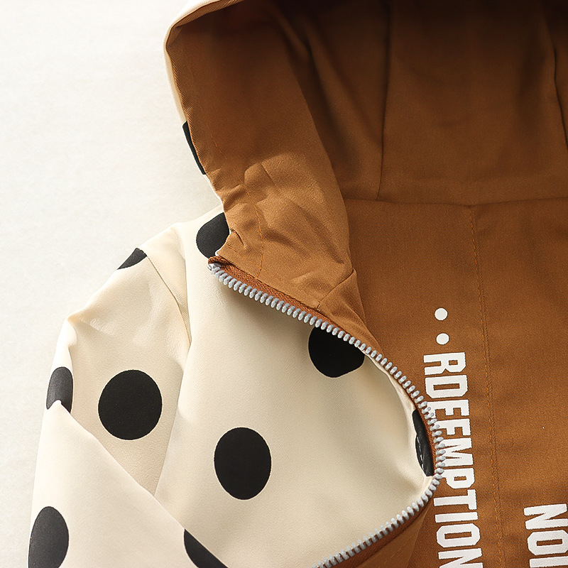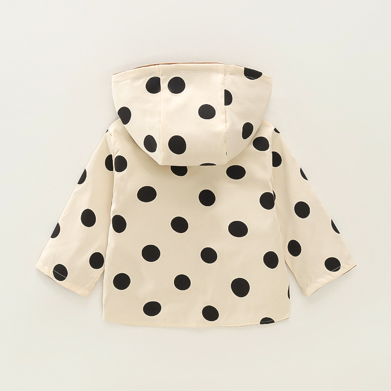 봄 새로운 아기 소녀 후드 지퍼 대형 라운드 도트 코트 코트 가을 소녀 캐주얼 패션 긴 소매 코트