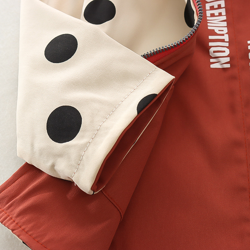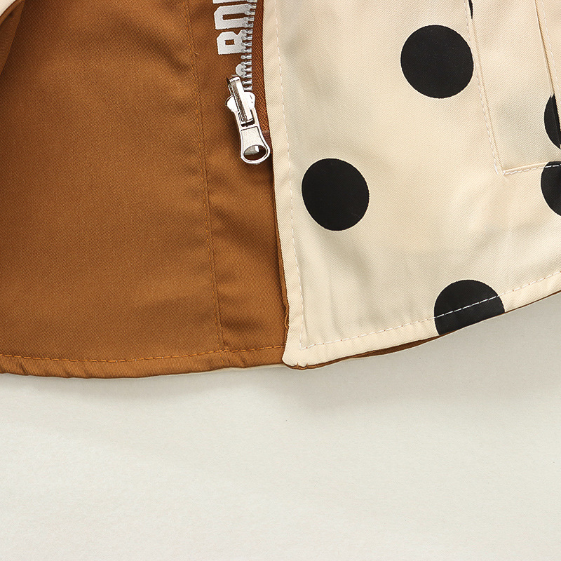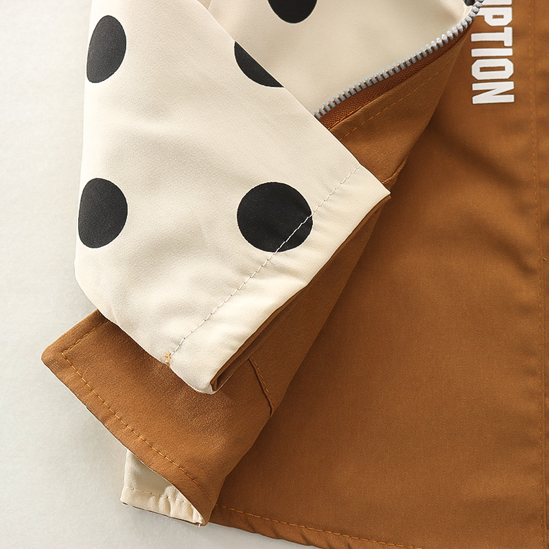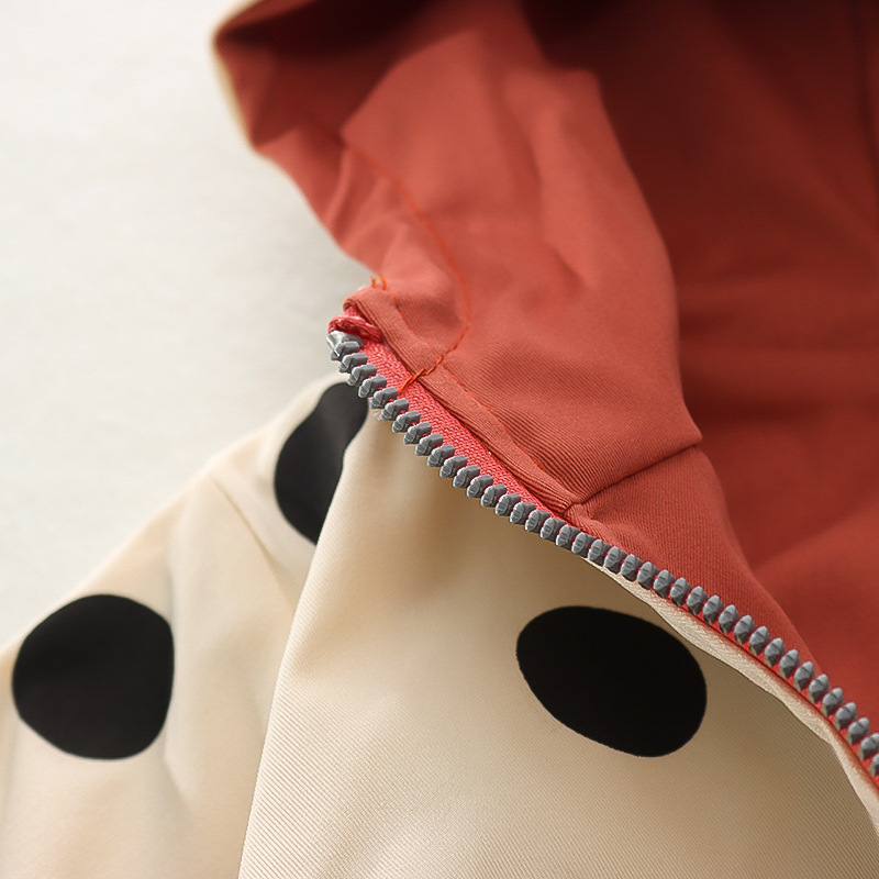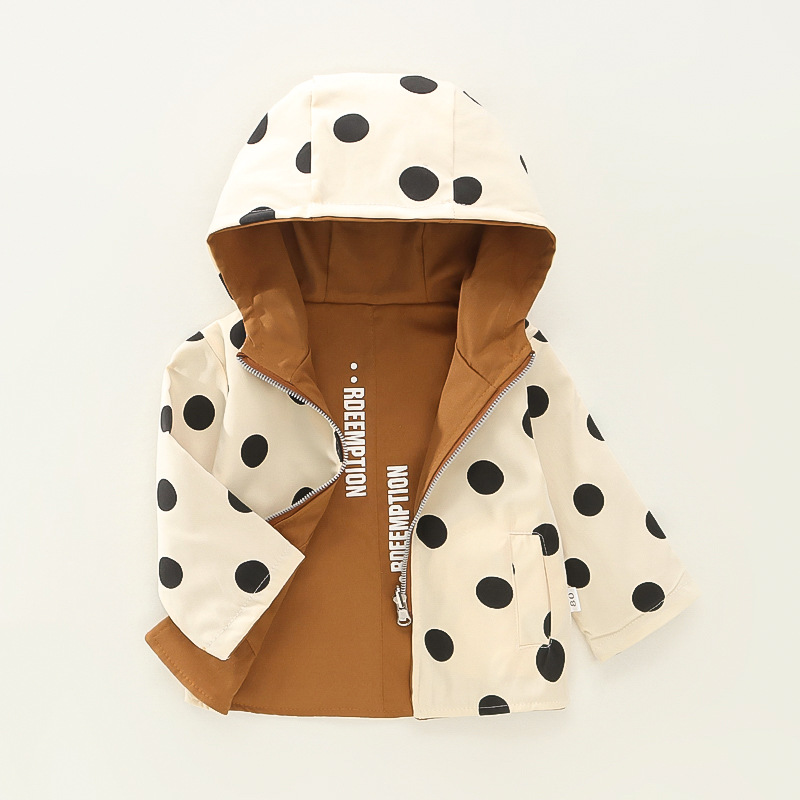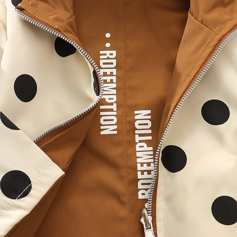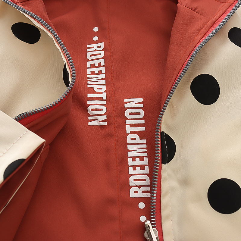 봄 새로운 아기 소녀 후드 지퍼 대형 라운드 도트 코트 코트 가을 소녀 캐주얼 패션 긴 소매 코트