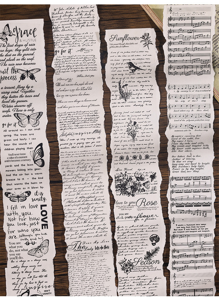 Yuezhen 복고풍 영어 편지 콜라주 텍스트 애완 동물 핸드북 재료 스티커 뒤에 시간 핸드북 테이프