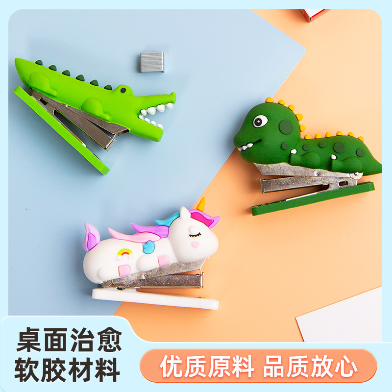 새로운 pvc 부드러운 접착제 스테이플러 창조적 인 만화 공룡 스테이플러 학생 용품 스테이플러 도매 공장