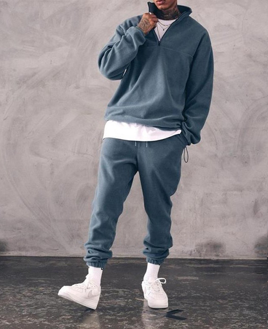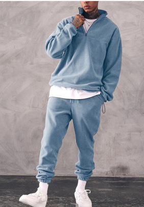 외국 무역 남자의 레저 스포츠 세트 스탠드 칼라 긴 소매 탑 바지 느슨한 레저 피트니스 2 세트 새로운 스타일