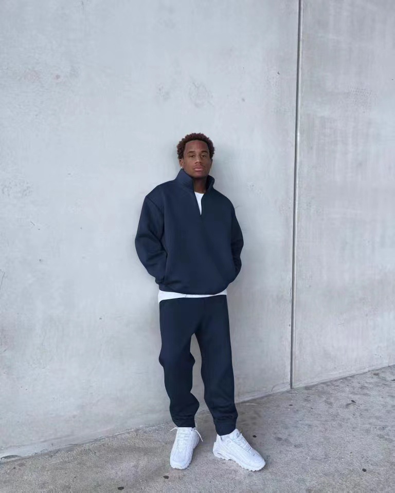 외국 무역 남자의 레저 스포츠 세트 스탠드 칼라 긴 소매 탑 바지 느슨한 레저 피트니스 2 세트 새로운 스타일스토어 가기
