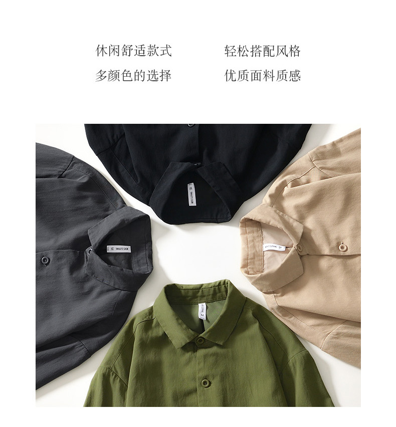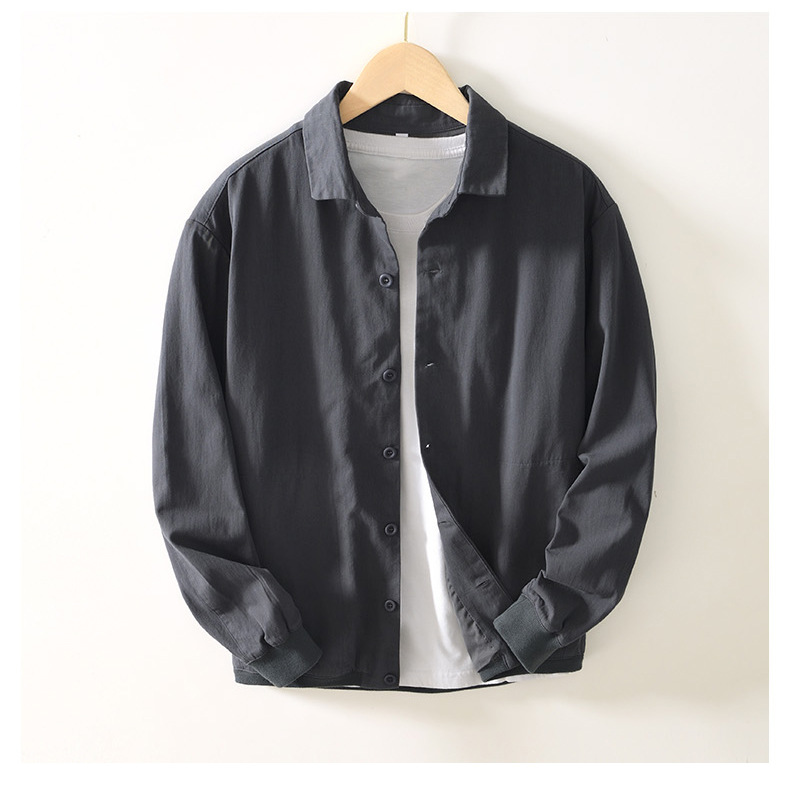 가을 단색 긴 소매 셔츠 남자의 복고풍 느슨한 캐주얼 포켓 코트 L084 의 세대스토어 가기