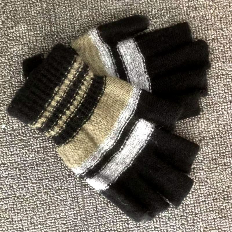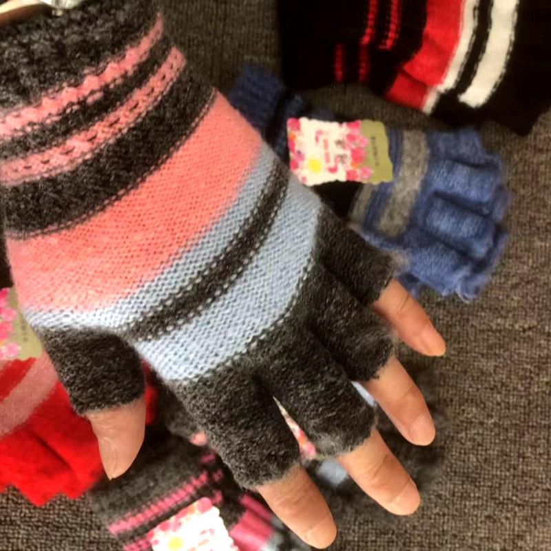 가을과 겨울 따뜻한 기모 남자와 여자의 모헤어 장갑 니트 이슬 반 손가락 내마모성 학생 승마 반 장갑