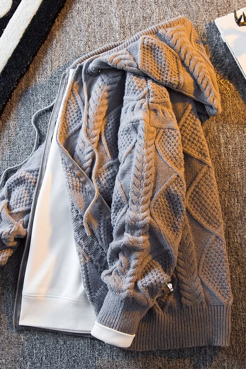 파인애플 스웨터 가을과 겨울 신상품 남자의 일본식 게으른 복고풍 니트 카디건 커플의 유행 브랜드 후드 스웨터