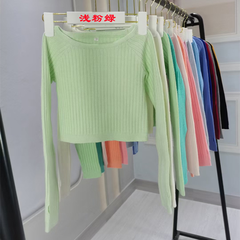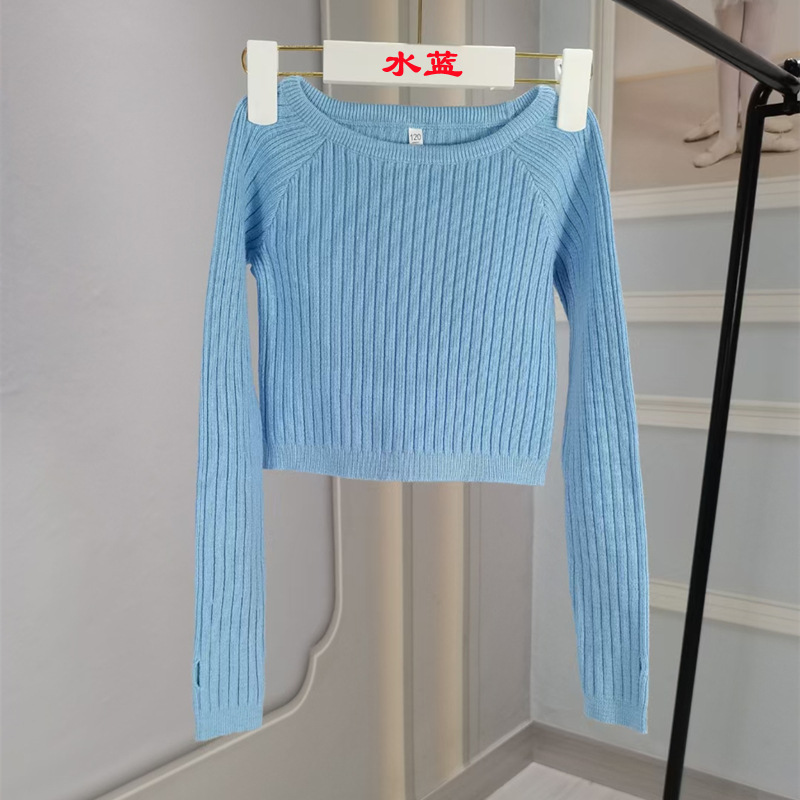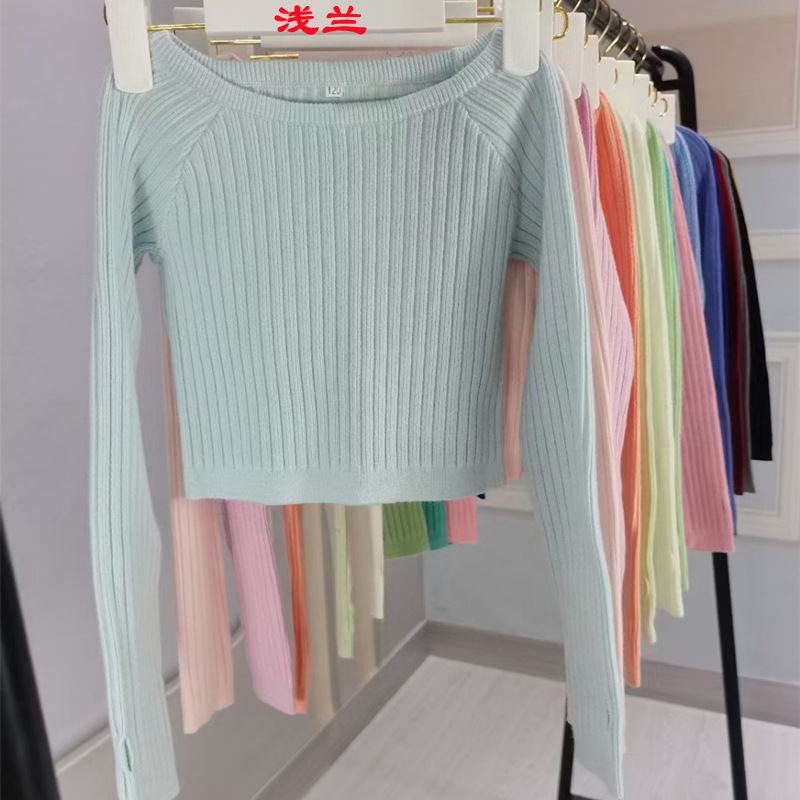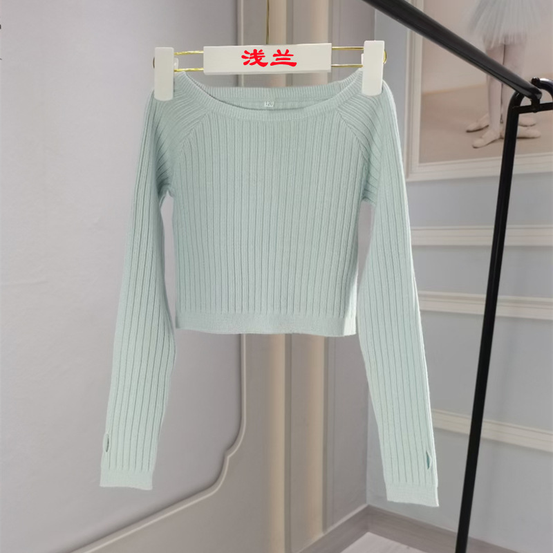 2023 가을과 겨울 새로운 색상 어린이 성인 댄스 스웨터 한 단어 크루넥 니트 외부 숄 풀오버스토어 가기