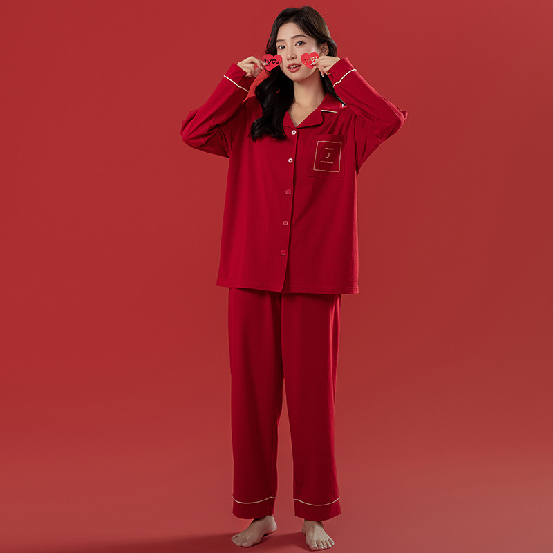 축제 빨간 잠옷 여자의 봄과 가을 커플 면 가정 의류 남자의 결혼식 신혼 부부 긴 소매 바지 세트 인생 년스토어 가기