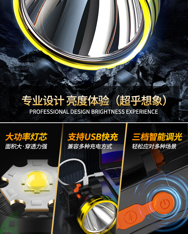 강한 가벼운 장거리 헤드 마운트 충전식 광부 램프 야외 비상 실버 잡담 폭발 실속 헤드 램프 같은 빠른 손