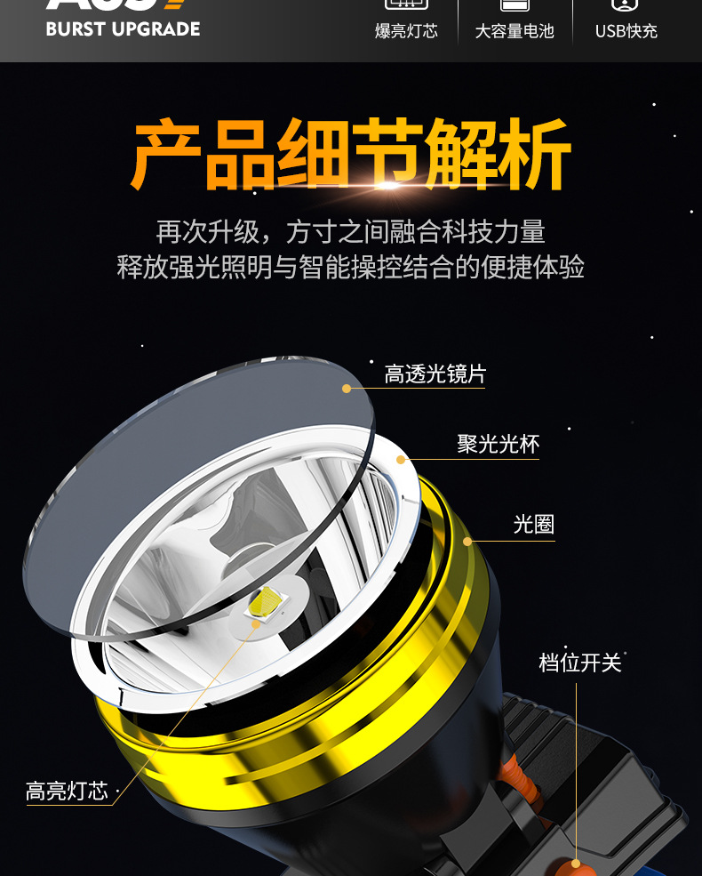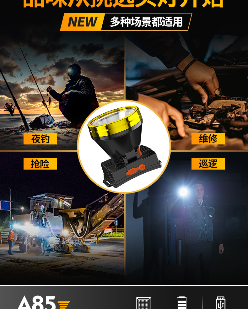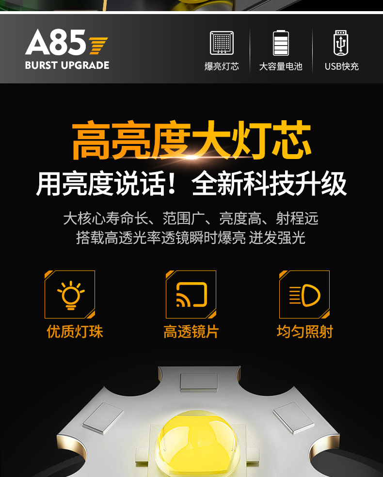 • A85 옐로우 라이트: 이중 리튬 + USB 충전 라인
