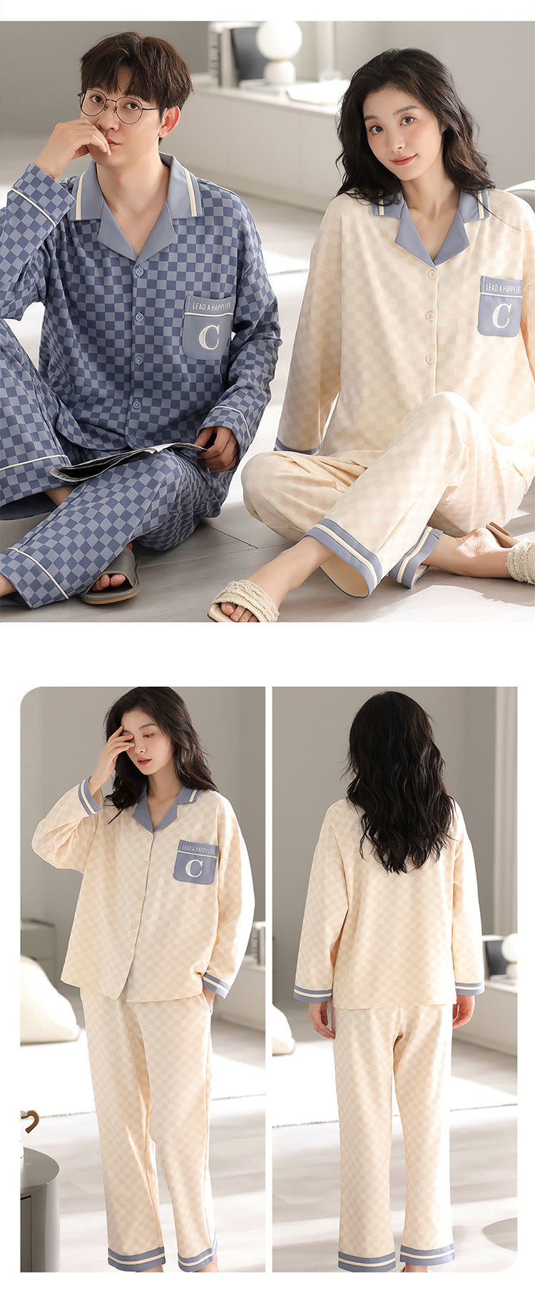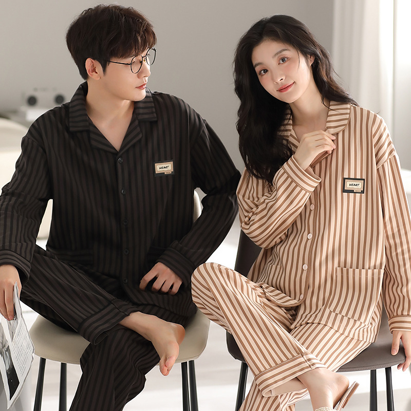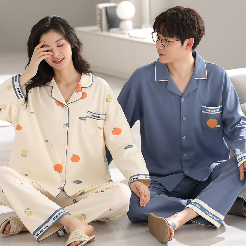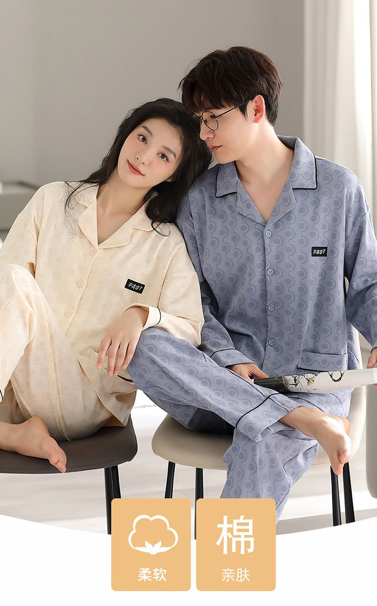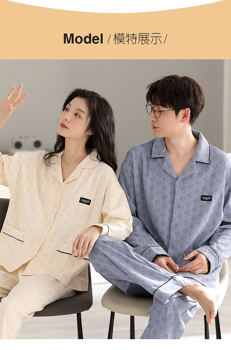 봄과 가을 커플 잠옷 면 긴 소매 CVC6040 양면 남성과 여성의 플러스 사이즈 겉옷 가정복 가디건스토어 가기