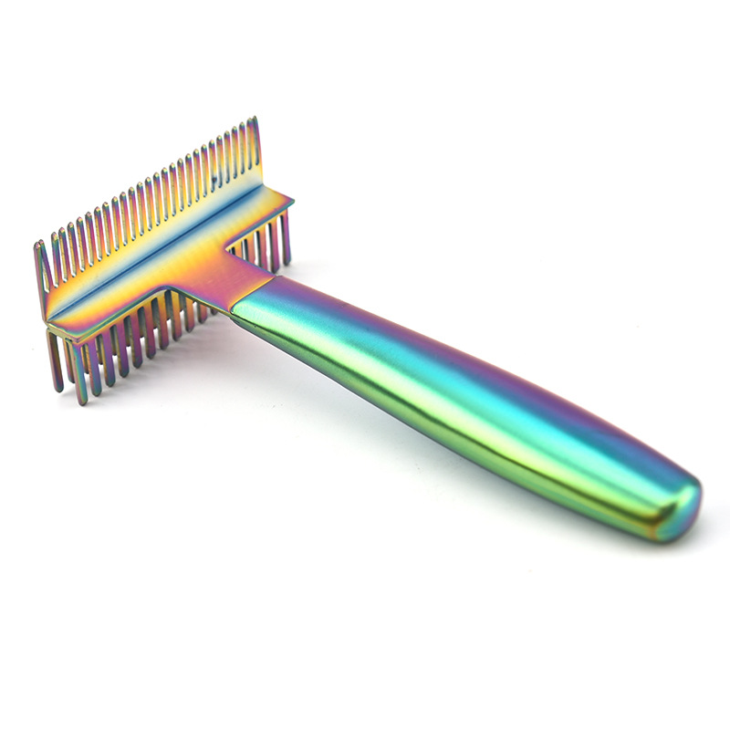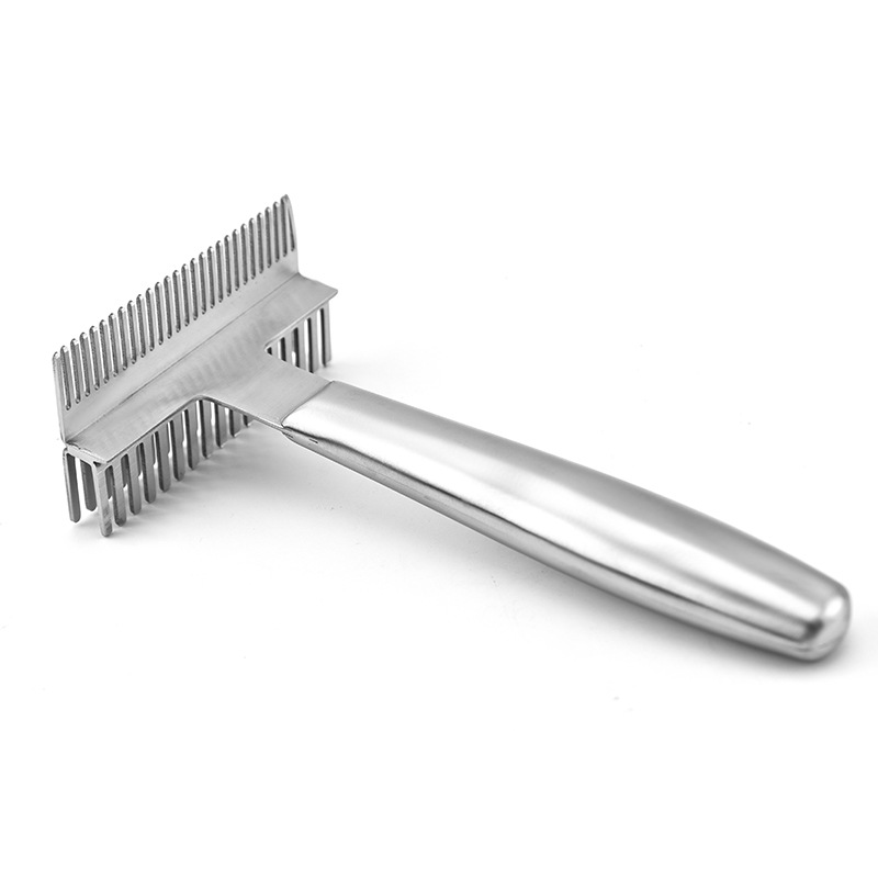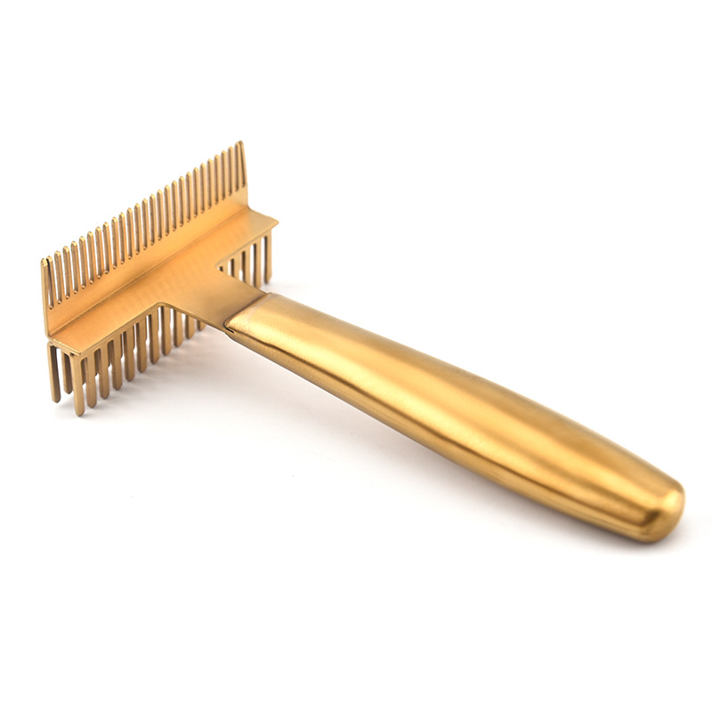 고양이 빗 청소 머리 개 빗 바늘 빗 셀프 클리닝 빗 올 스틸 중공 핸들 마사지 빗 헤어 리무버 개 고양이 오픈 매듭