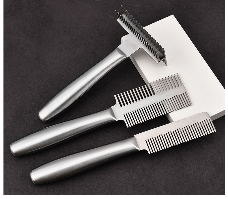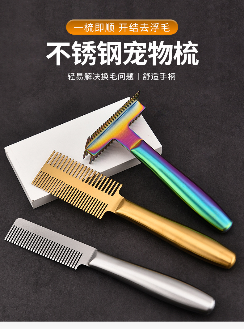 고양이 빗 청소 머리 개 빗 바늘 빗 셀프 클리닝 빗 올 스틸 중공 핸들 마사지 빗 헤어 리무버 개 고양이 오픈 매듭스토어 가기