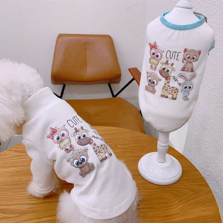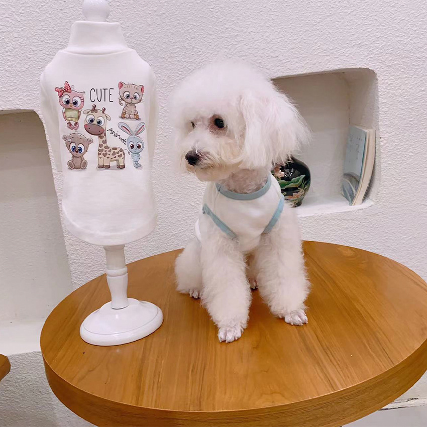 애완 동물 강아지 옷 여름 만화 기본 레이어 기본 조끼 캐주얼 Bichon 테디 의류스토어 가기