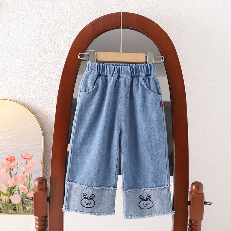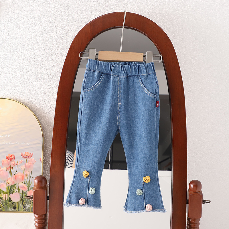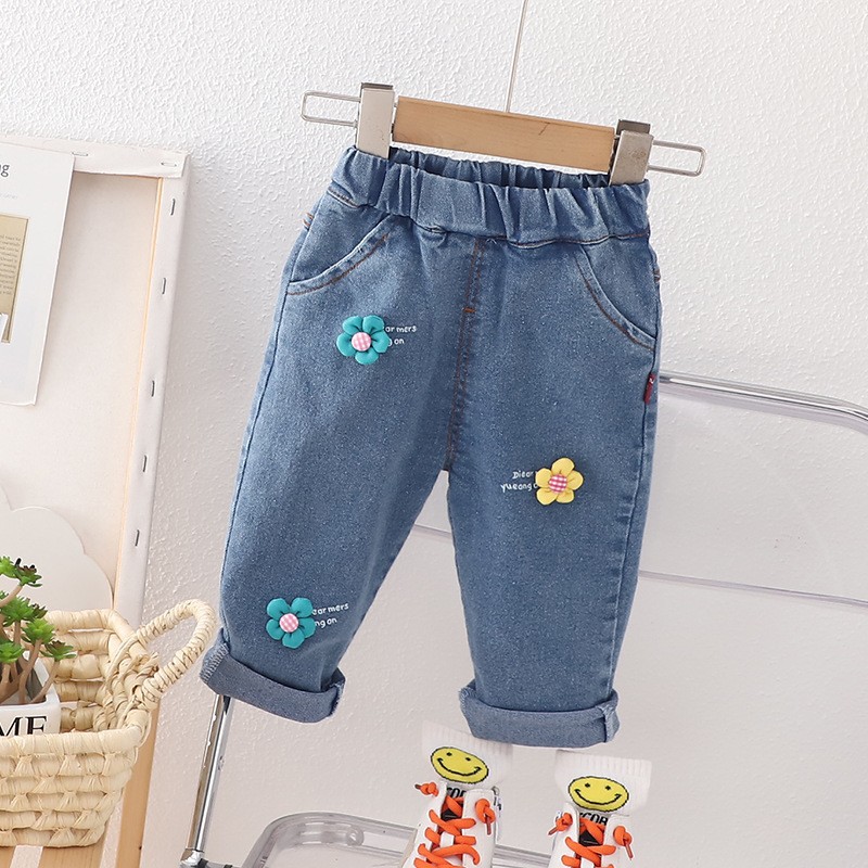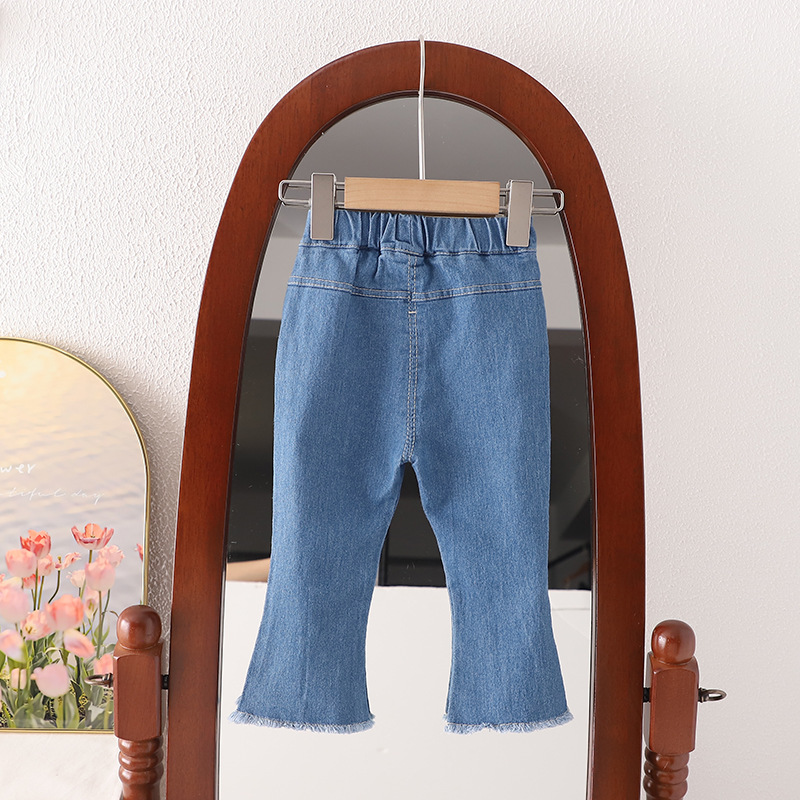 무료 배송 이키즈 소녀 봄과 가을 청바지 2024 새로운 올 매치 봄과 가을 바지 아기 소녀 가을 바지스토어 가기