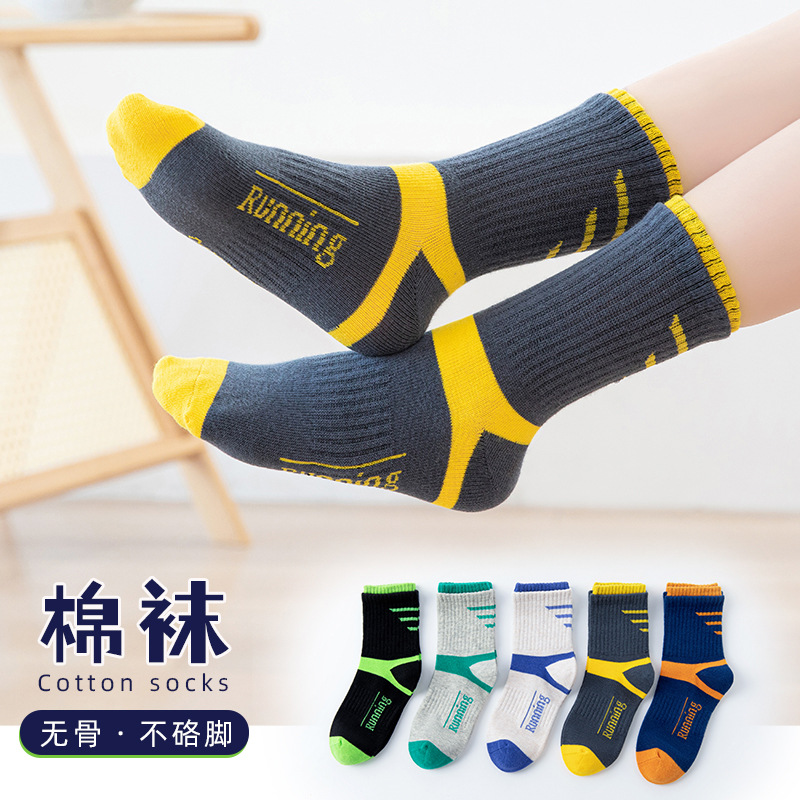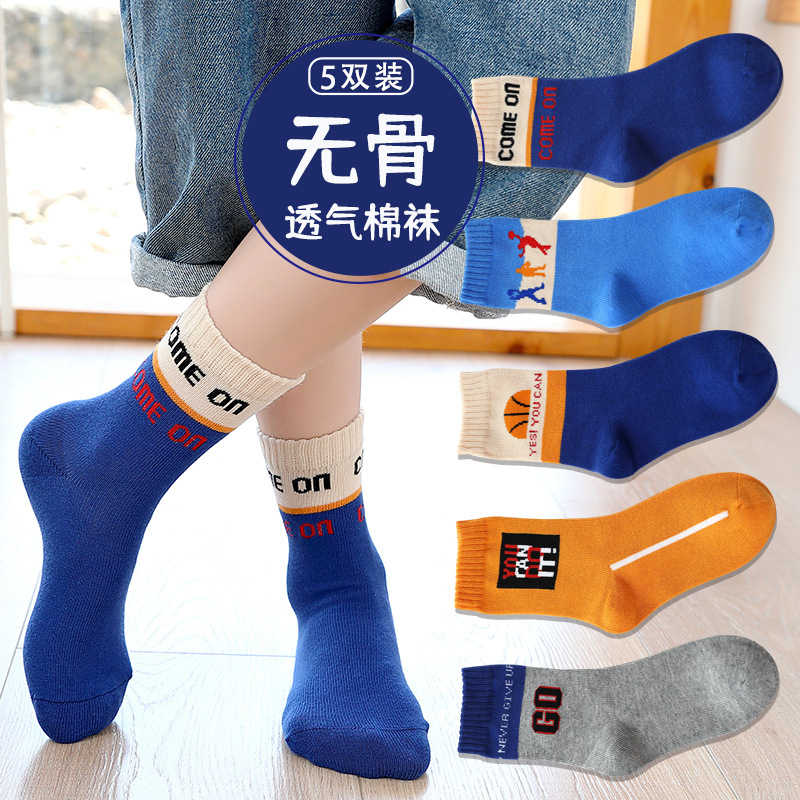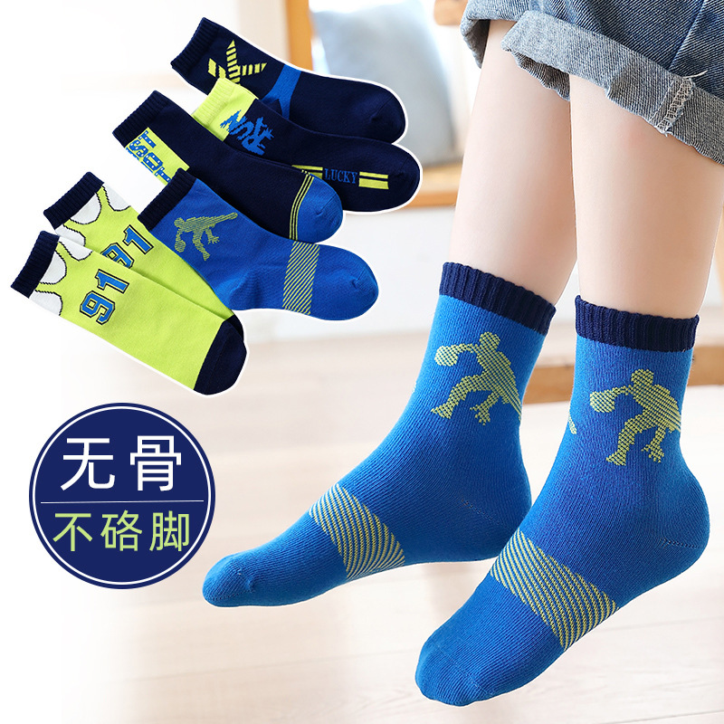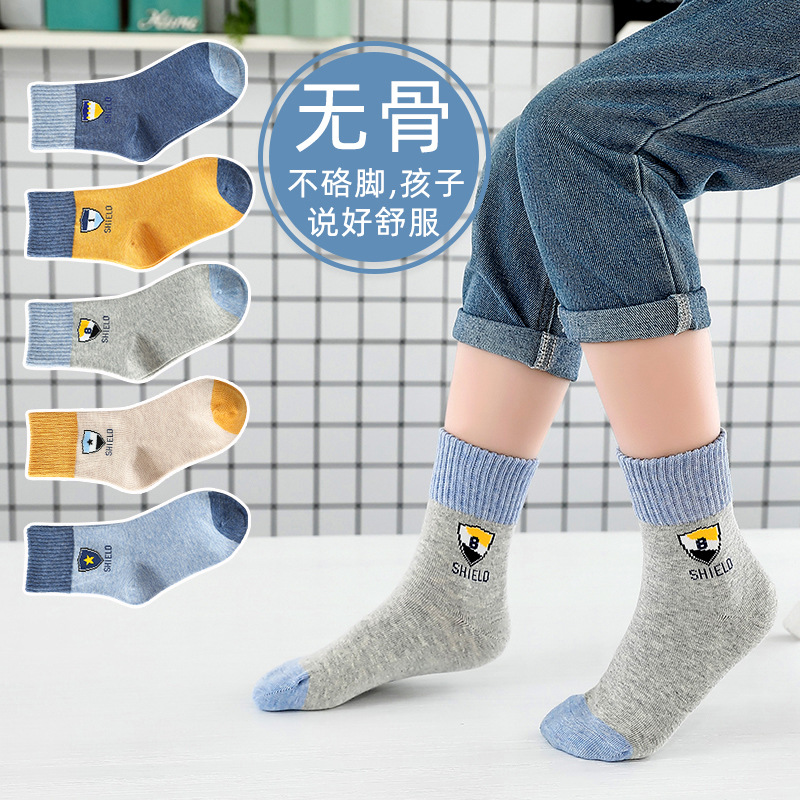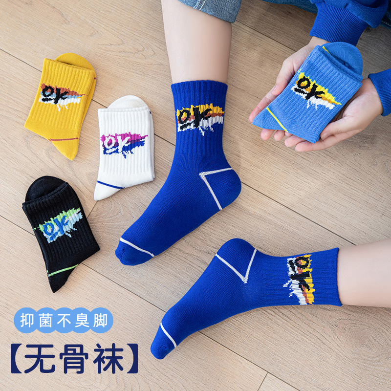 소년 양말 봄과 가을 면 양말 뼈없는 중간 길이 양말 가을 겨울 스포츠 양말 빗질 면 양말 유행 어린이 양말스토어 가기