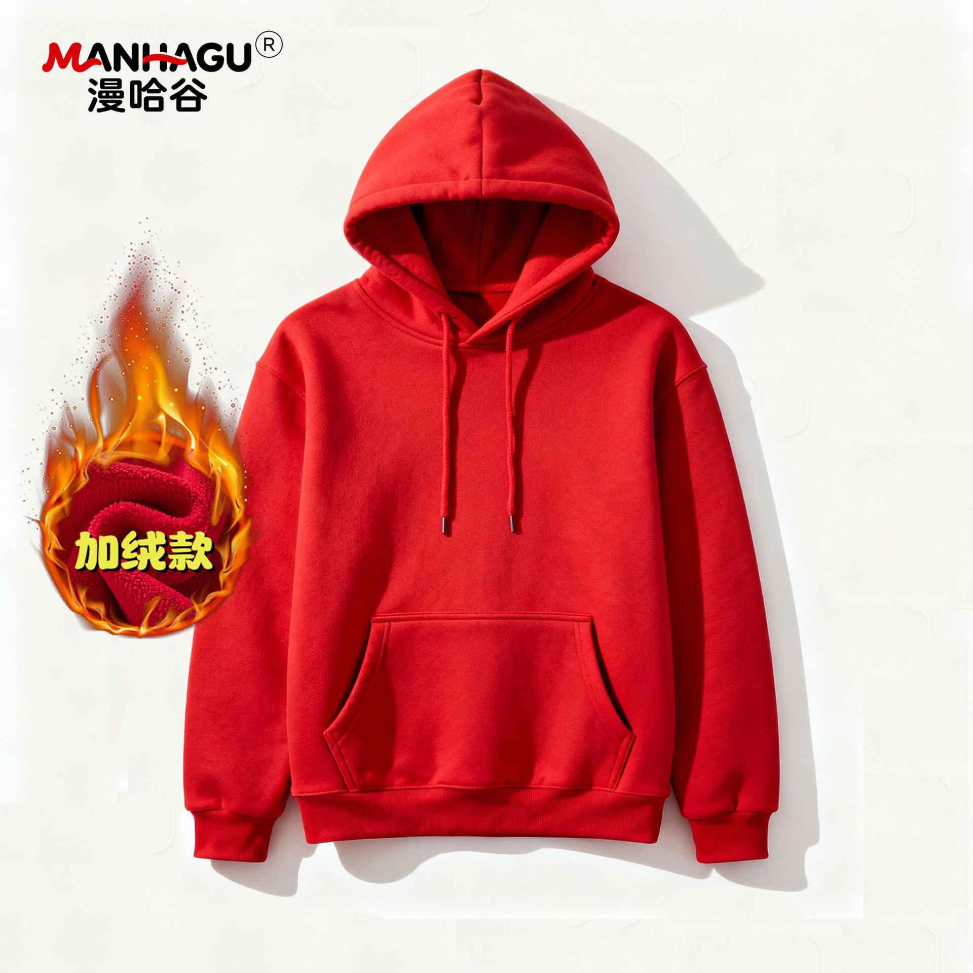 • 후드 플리스 스웨트셔츠-레드