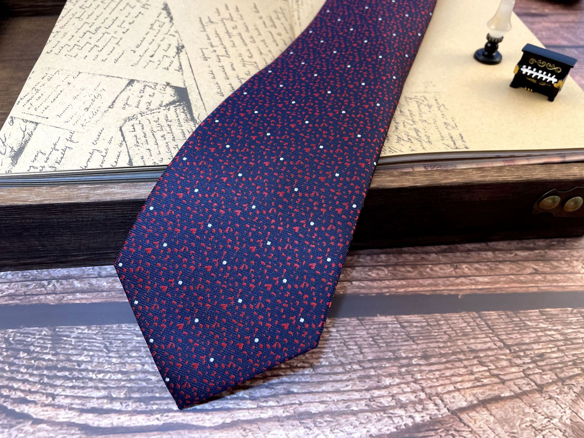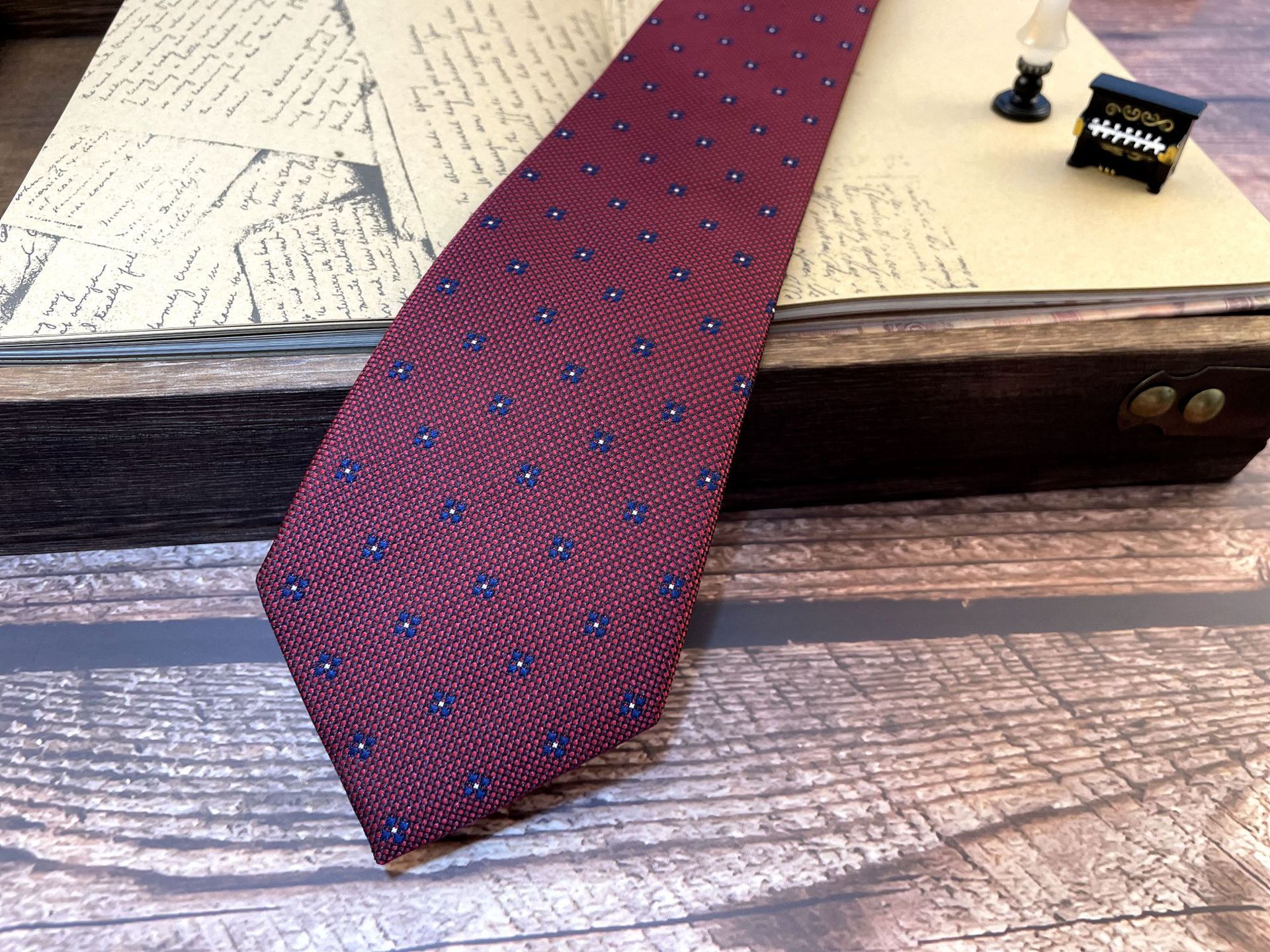 • 15 버건디 블루 자카드 넥타이 핸드 타이