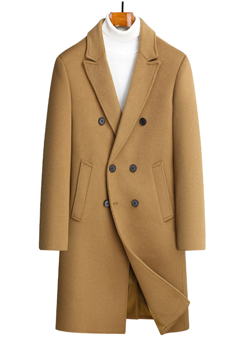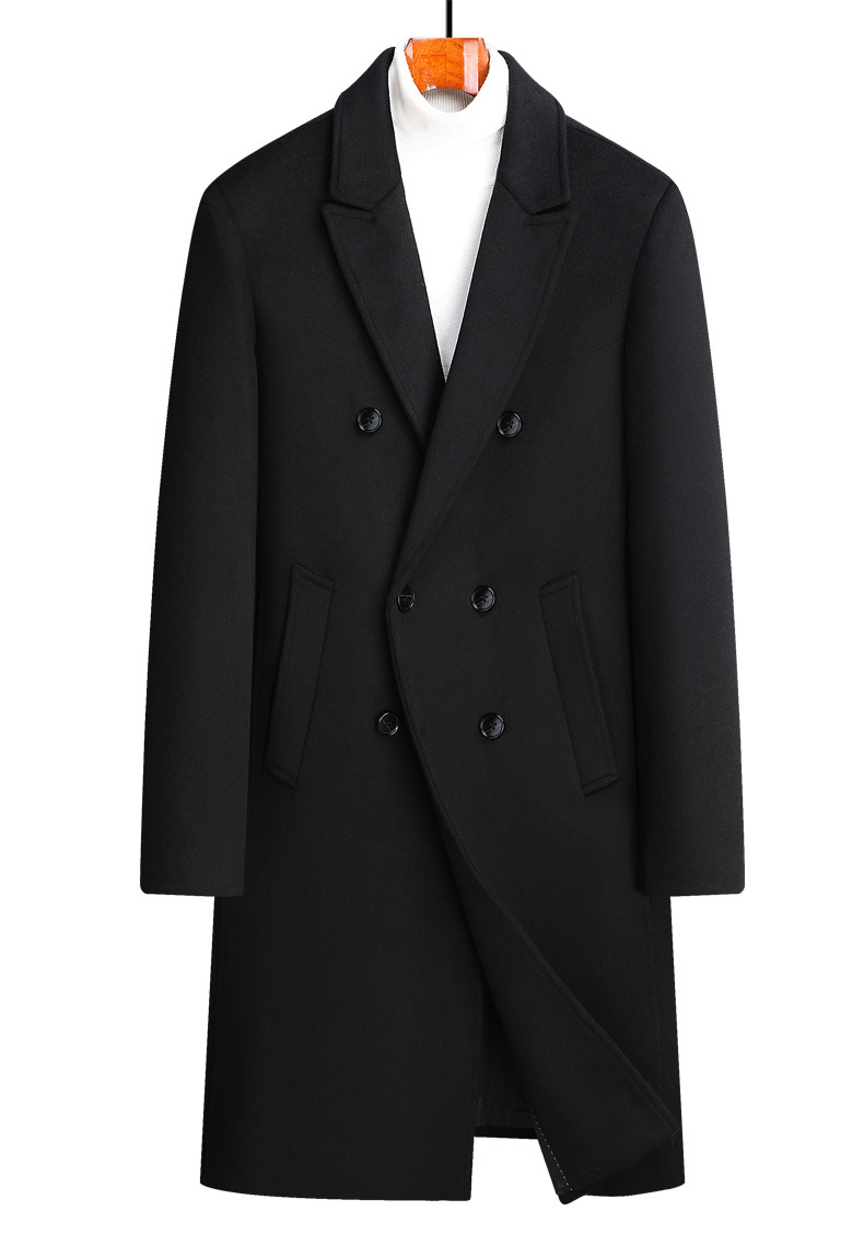가을과 겨울 새로운 양모 코트 남자의 긴 더블 브레스트 모직 코트 캐주얼 세트 칼라 코트