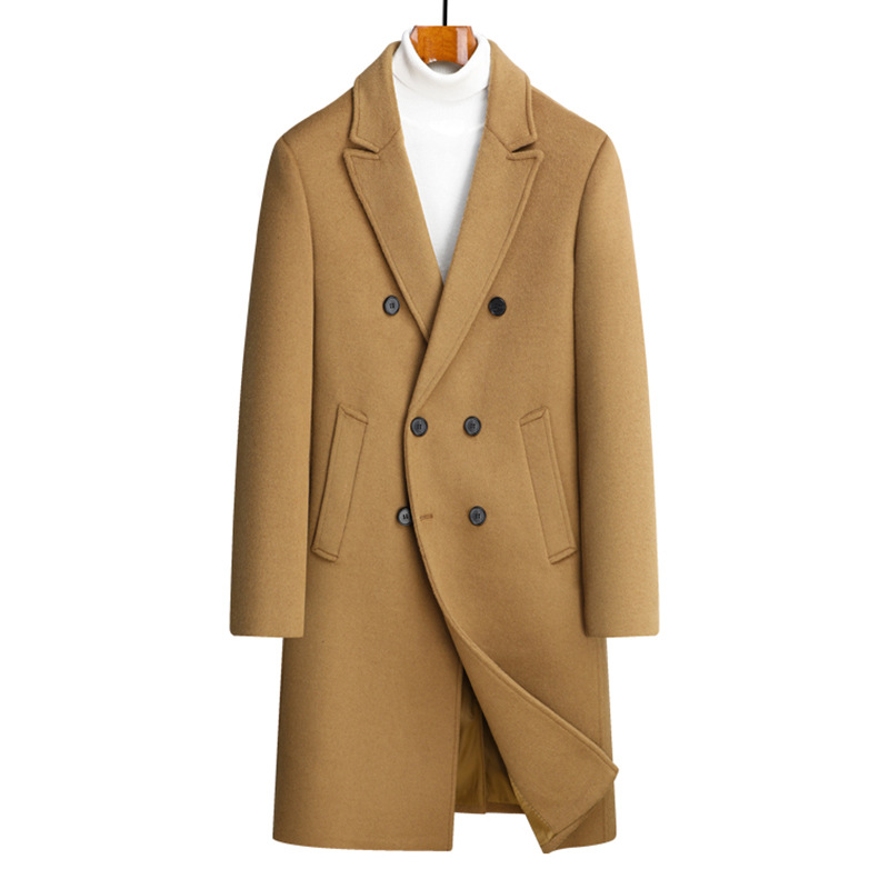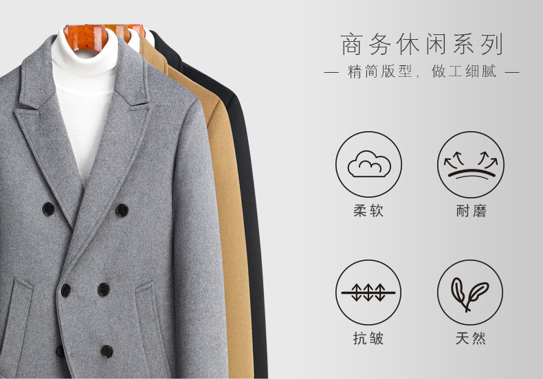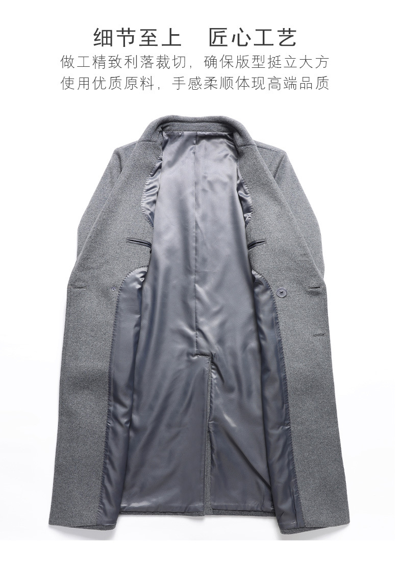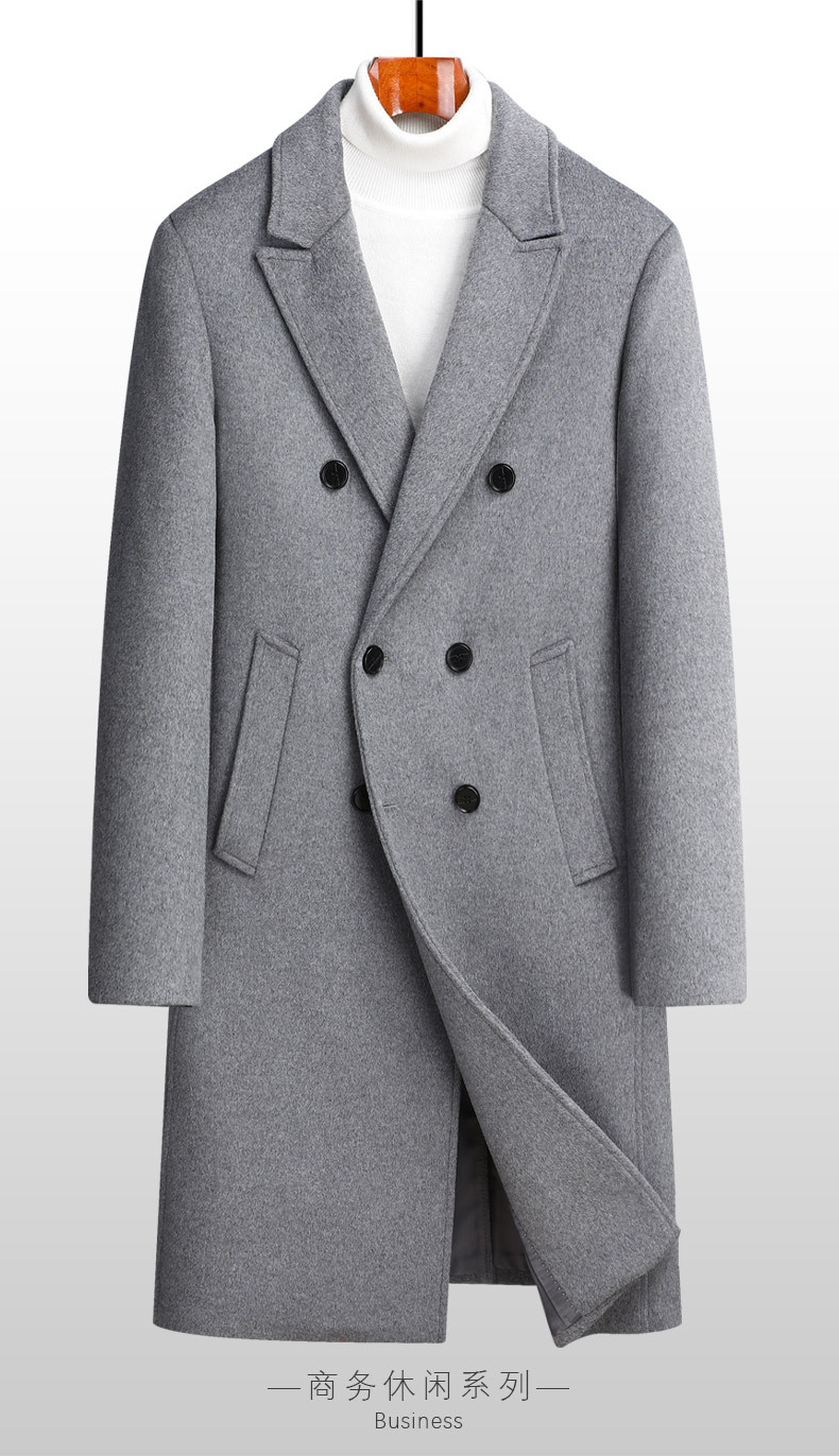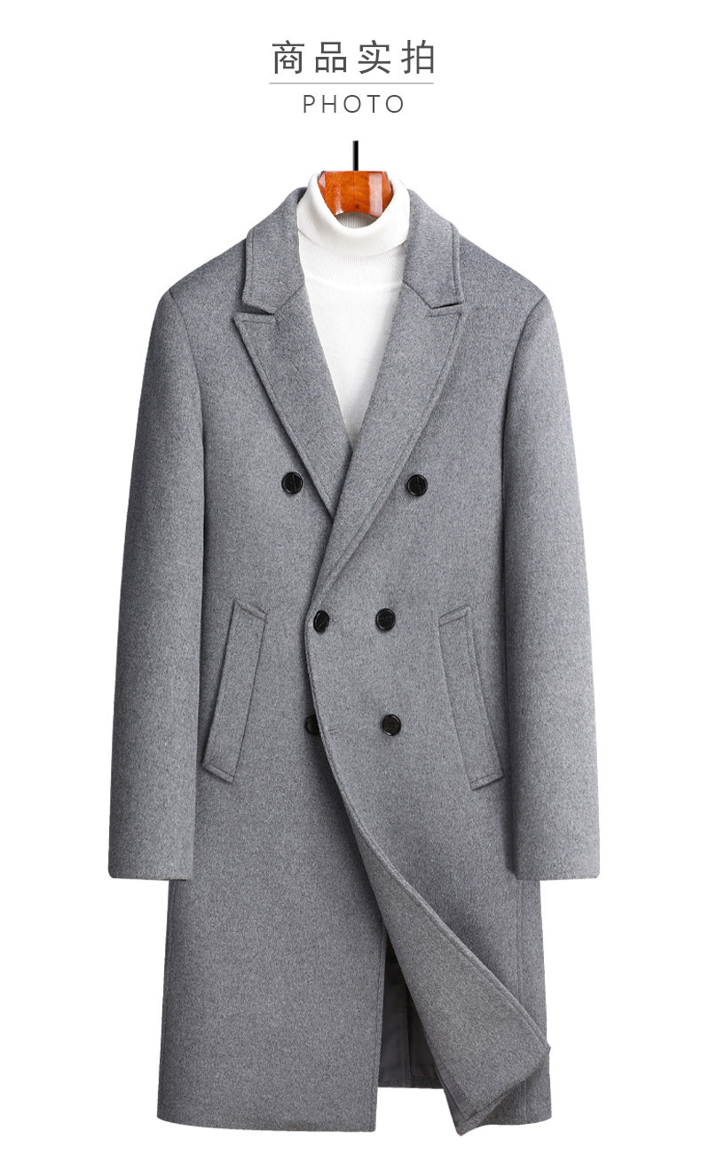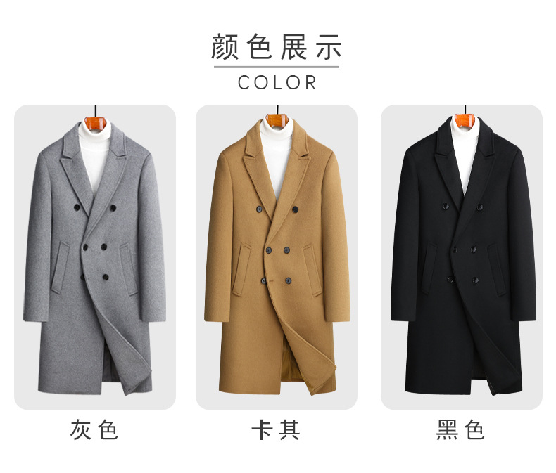 가을과 겨울 새로운 양모 코트 남자의 긴 더블 브레스트 모직 코트 캐주얼 세트 칼라 코트스토어 가기