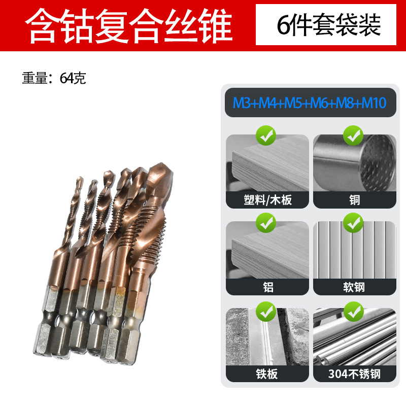 맞춤형 코발트 함유 복합 탭 다기능 머신 탭 전기 드릴 드릴링 툴 드릴링 및 탭핑 통합 스크류 탭스토어 가기