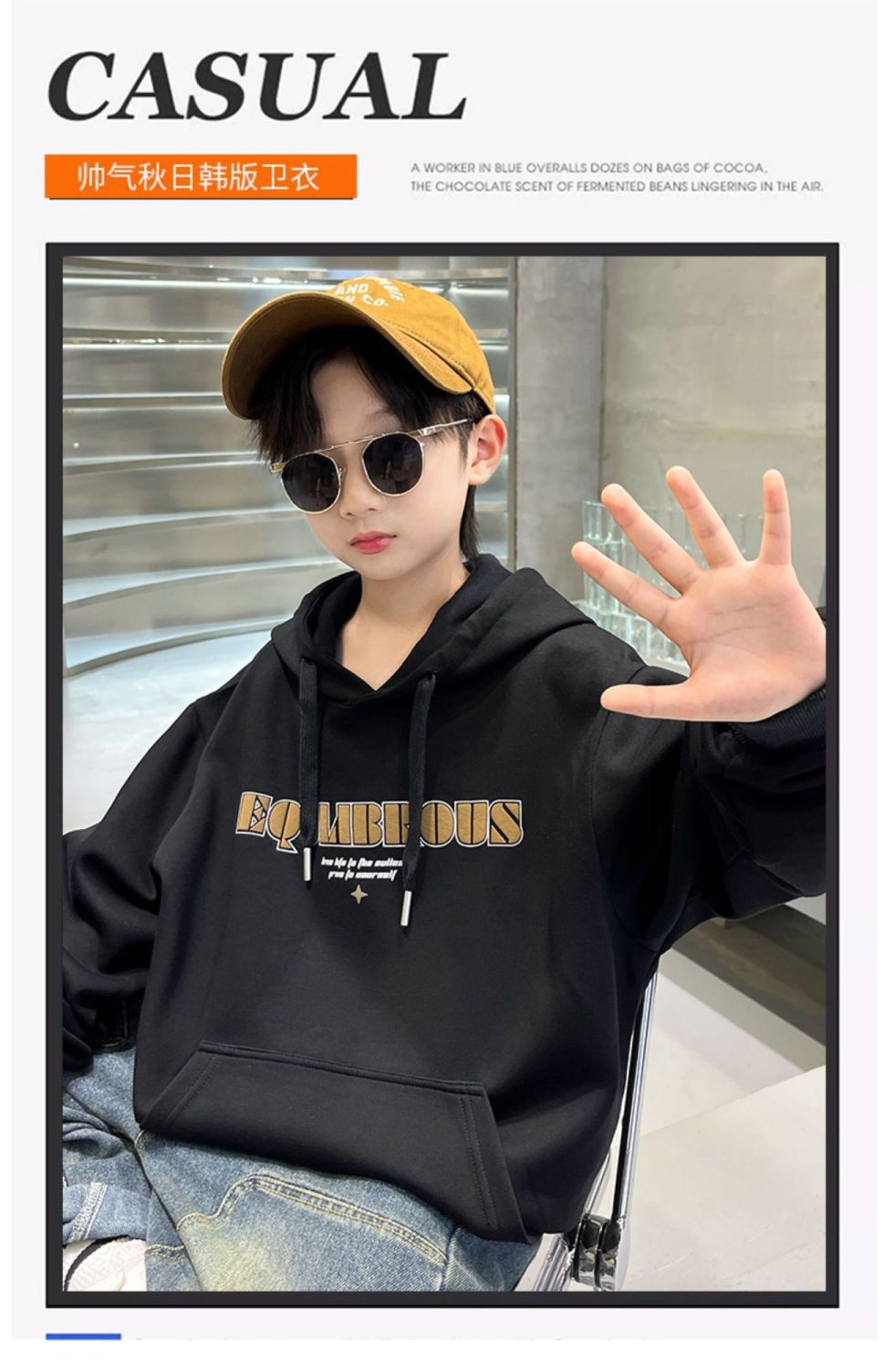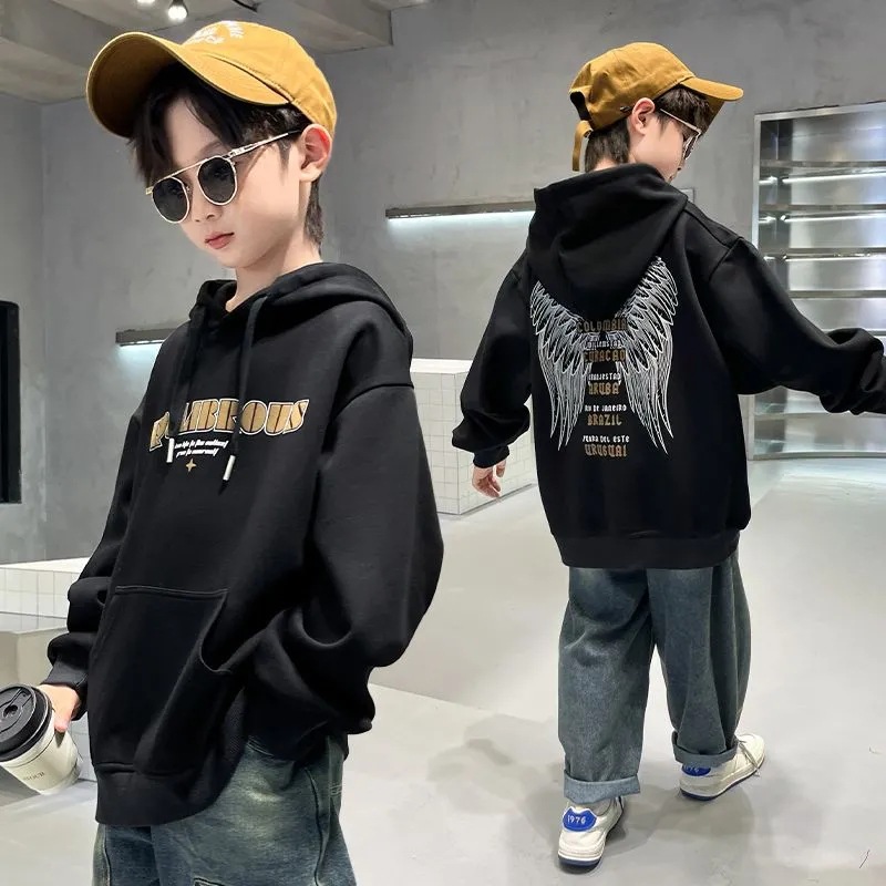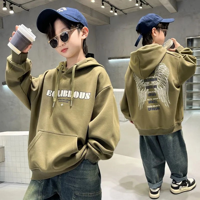 소년 봄과 가을 스웨터 2023 새로운 후드 큰 소년 한국 스타일 잘 생긴 기본 셔츠 가을 탑