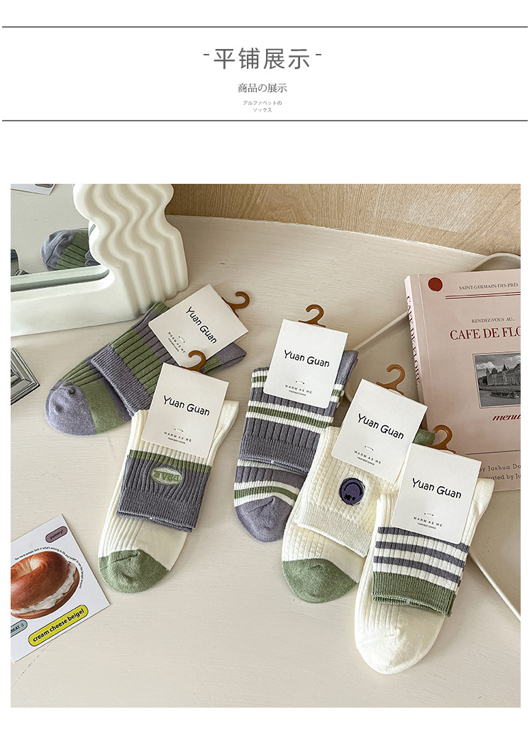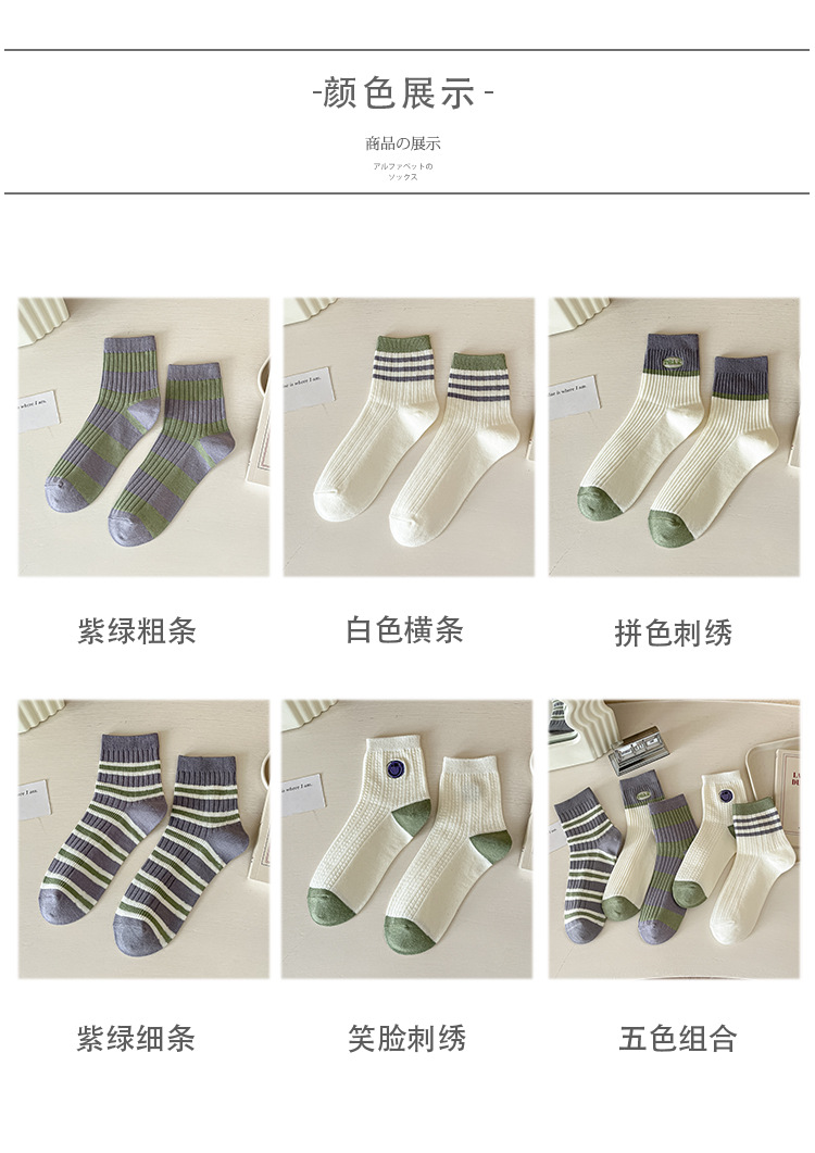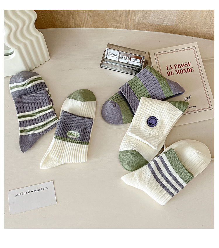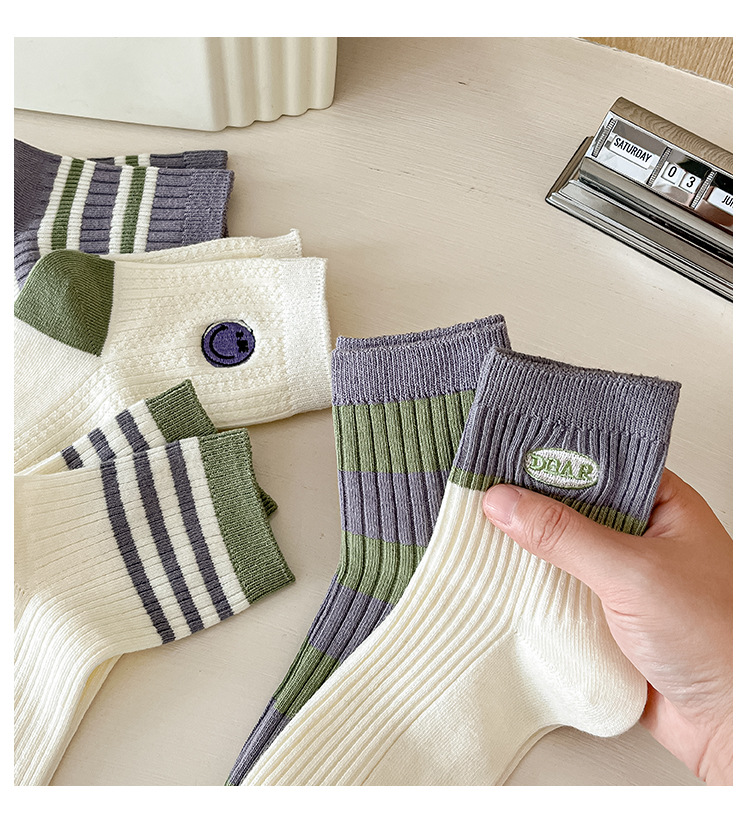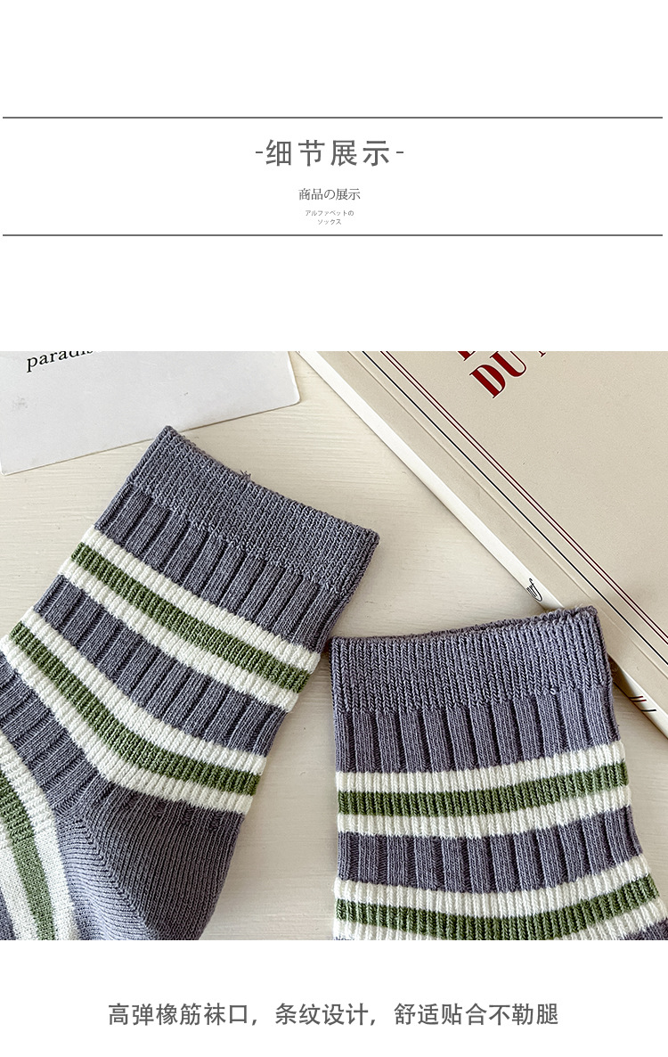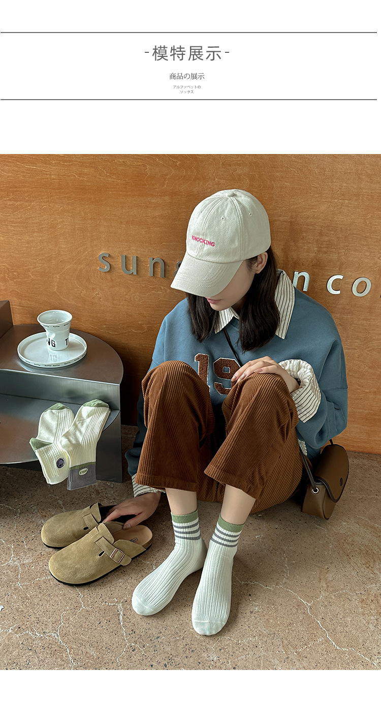 가을과 겨울 양말 여성용 컬러 매칭 스트라이프 문자 자수 얇은 중간 길이 양말 Instagram 스타일 여성용 트렌디 한 2 바늘 면화 양말스토어 가기