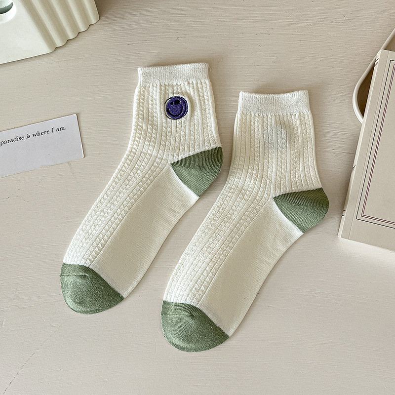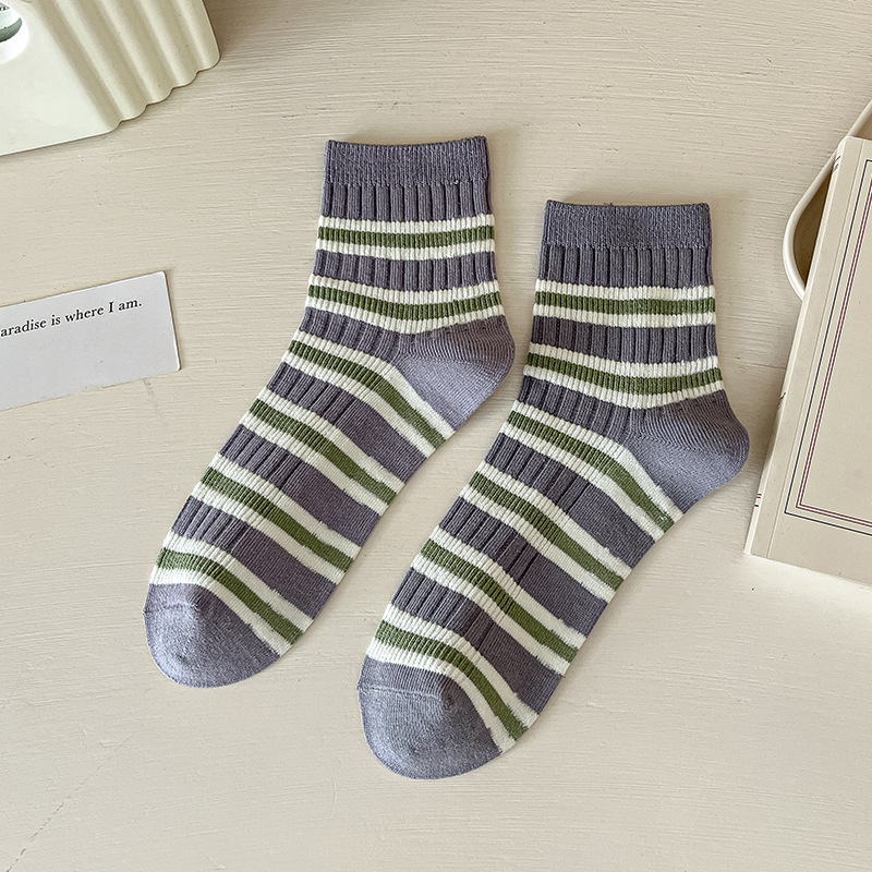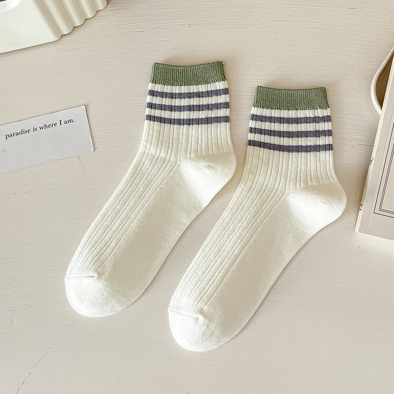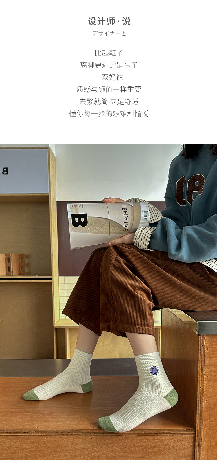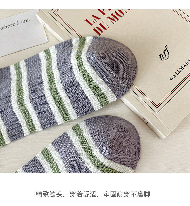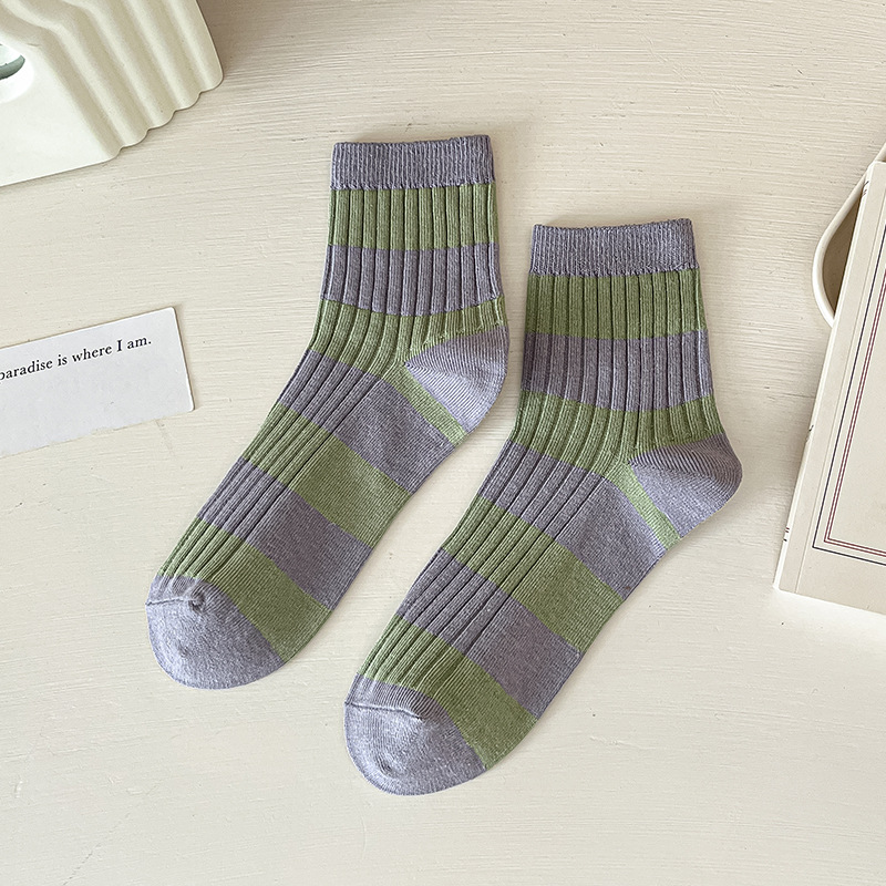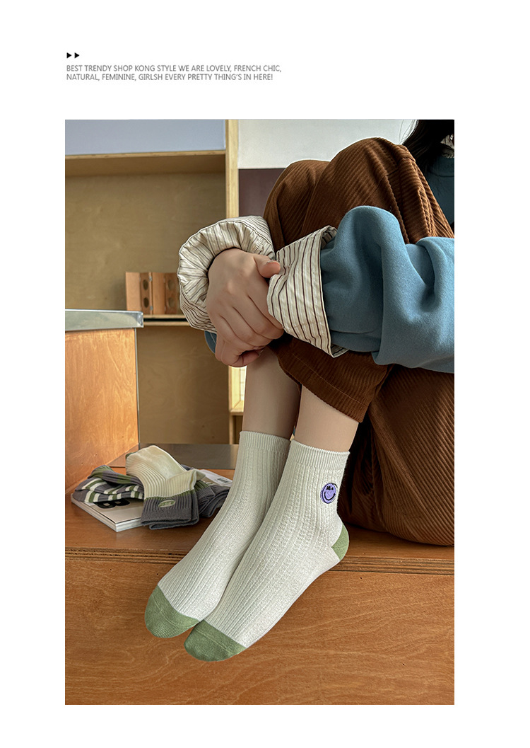 가을과 겨울 양말 여성용 컬러 매칭 스트라이프 문자 자수 얇은 중간 길이 양말 Instagram 스타일 여성용 트렌디 한 2 바늘 면화 양말스토어 가기