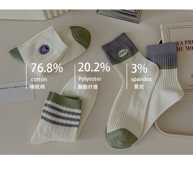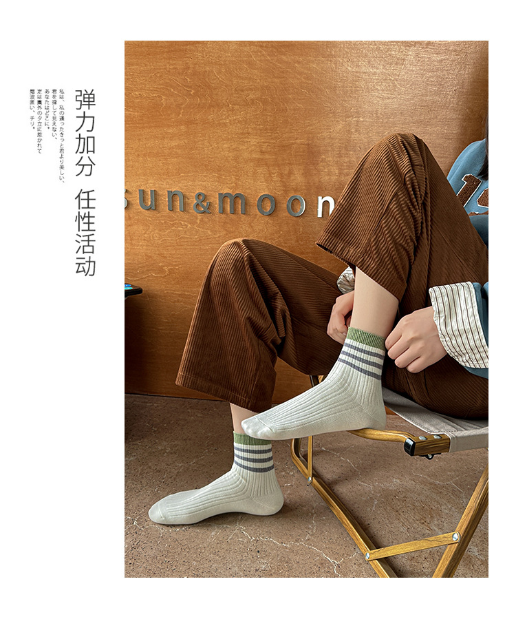가을과 겨울 양말 여성용 컬러 매칭 스트라이프 문자 자수 얇은 중간 길이 양말 Instagram 스타일 여성용 트렌디 한 2 바늘 면화 양말
