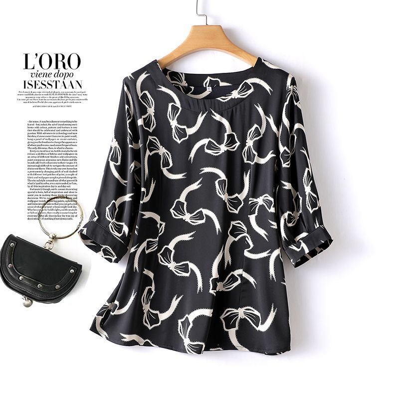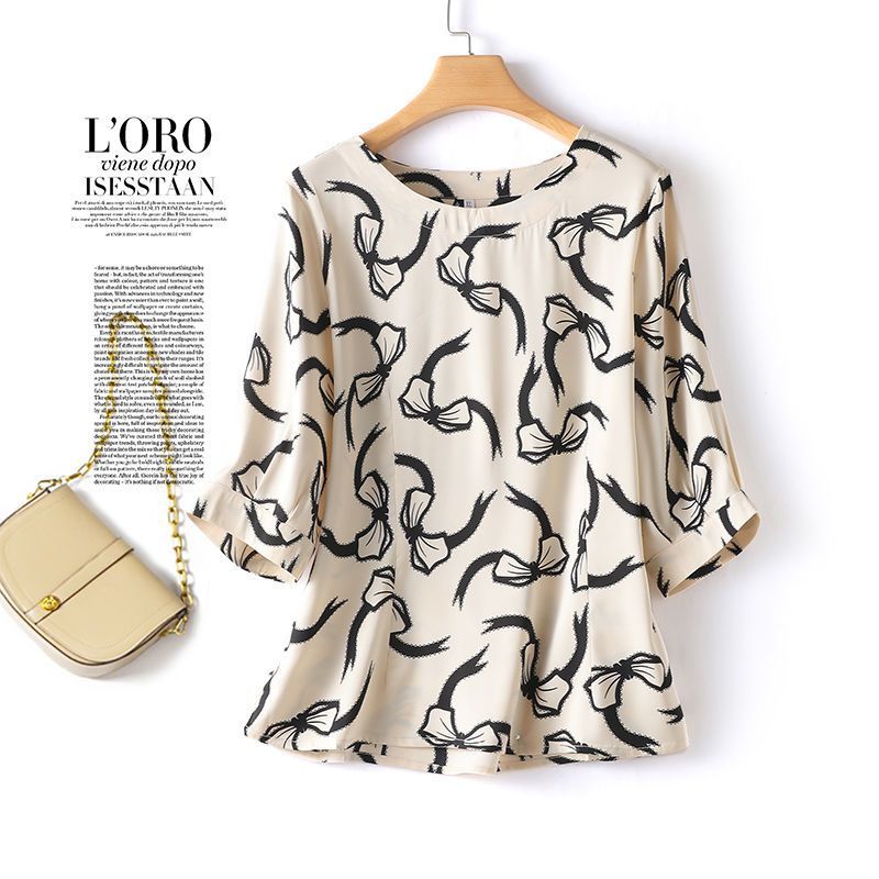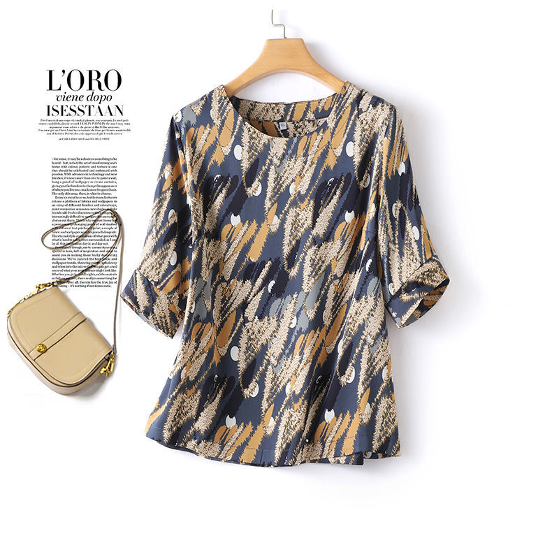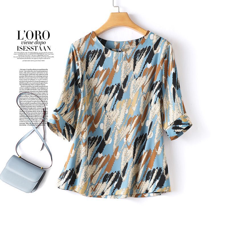 2023 새로운 쉬폰 반팔 티셔츠 여성용 중년 어머니의 탑 새로운 여름 패션 웨스턴 스타일 작은 셔츠스토어 가기