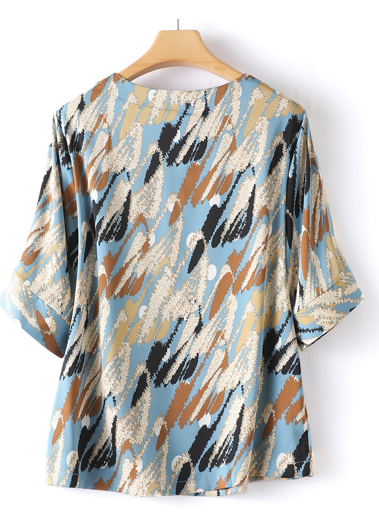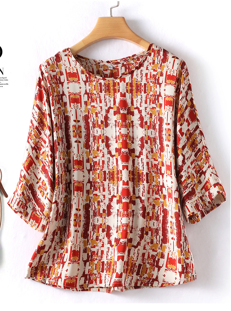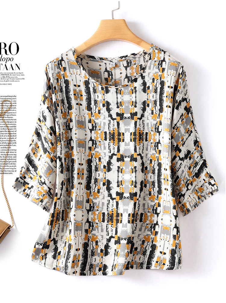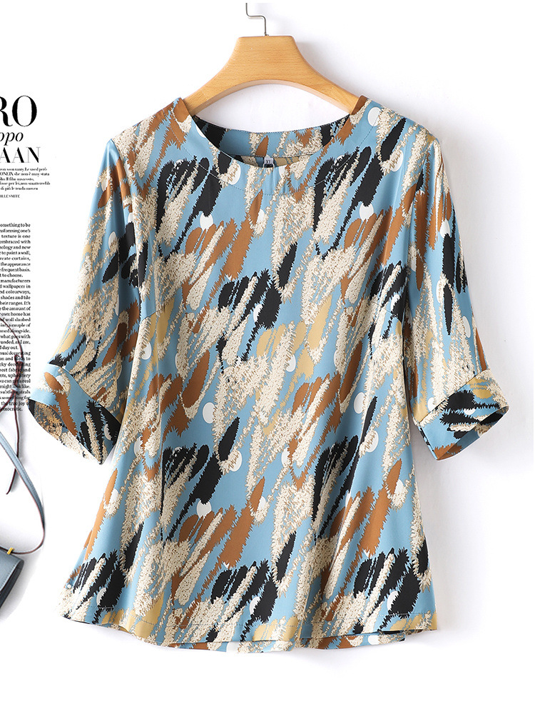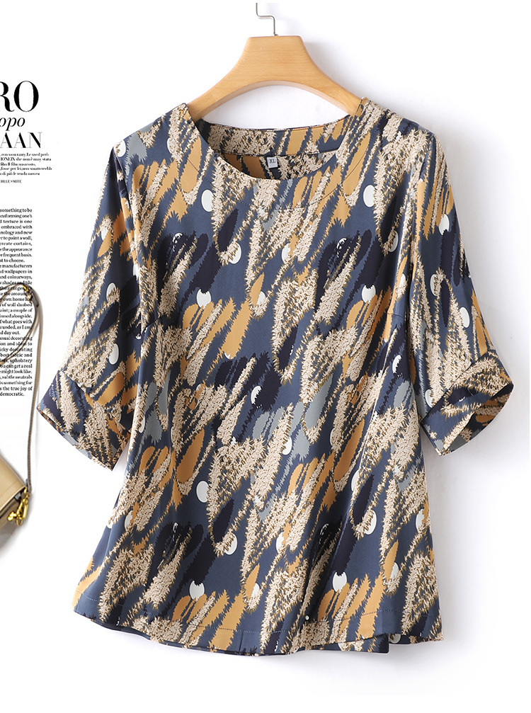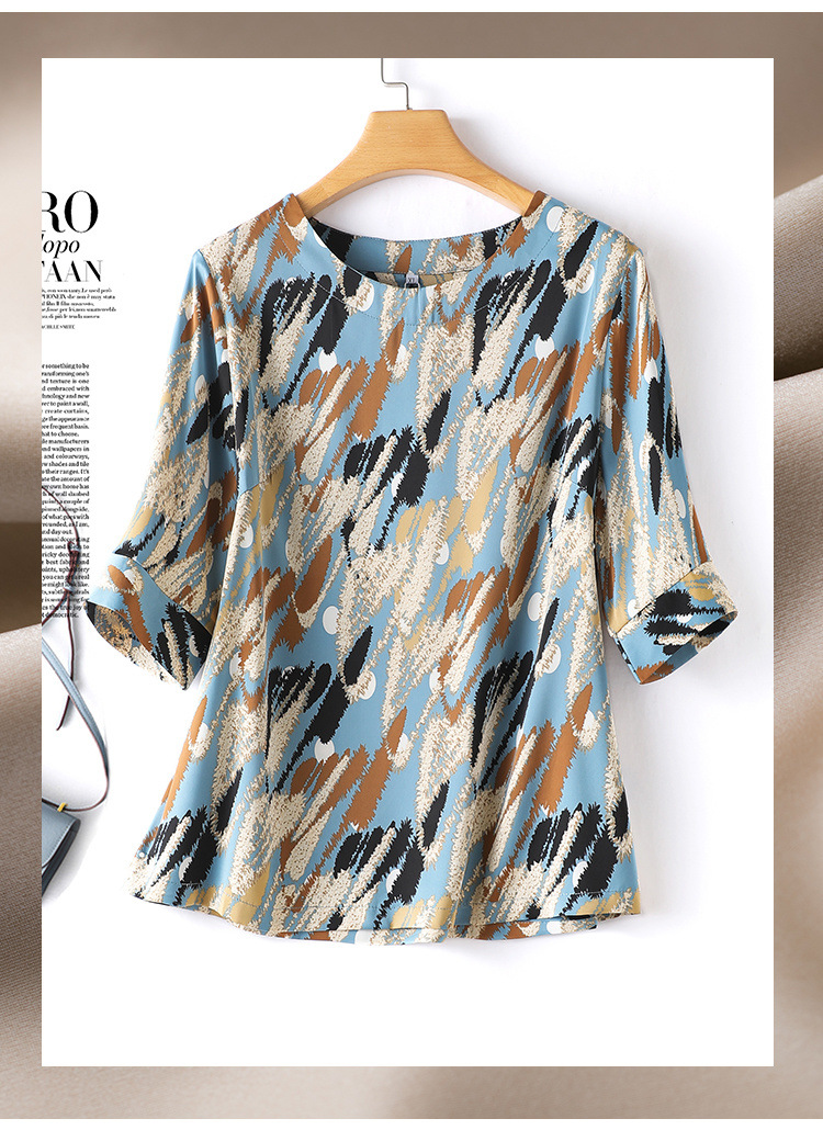 2023 새로운 쉬폰 반팔 티셔츠 여성용 중년 어머니의 탑 새로운 여름 패션 웨스턴 스타일 작은 셔츠