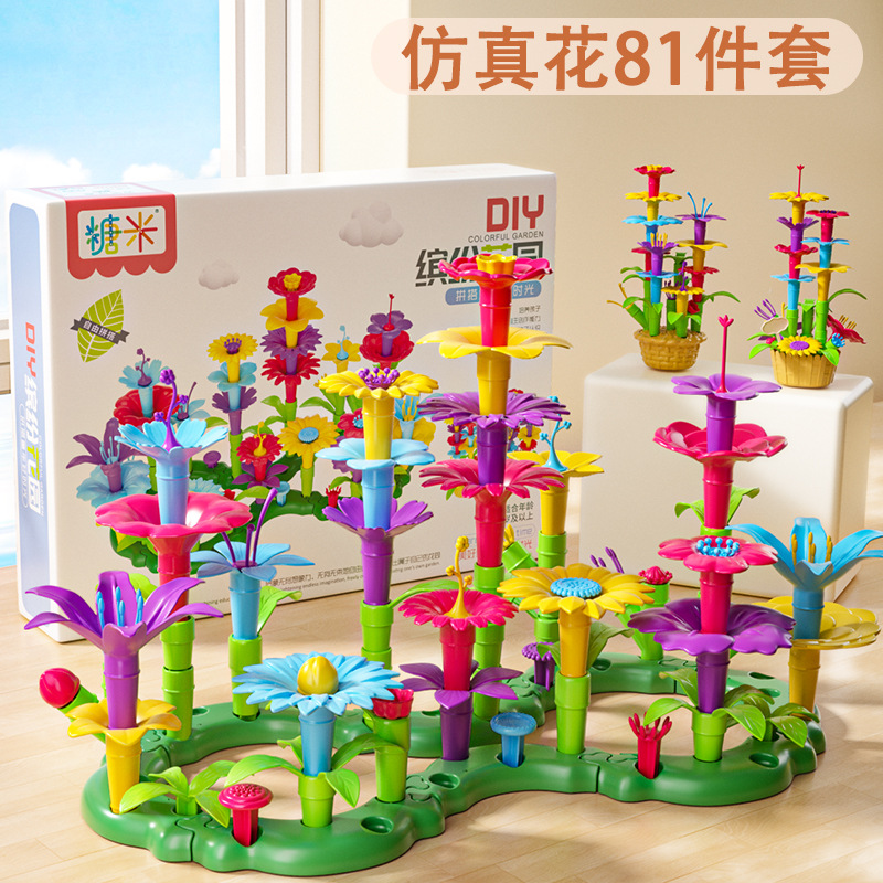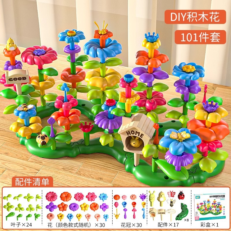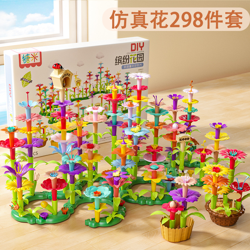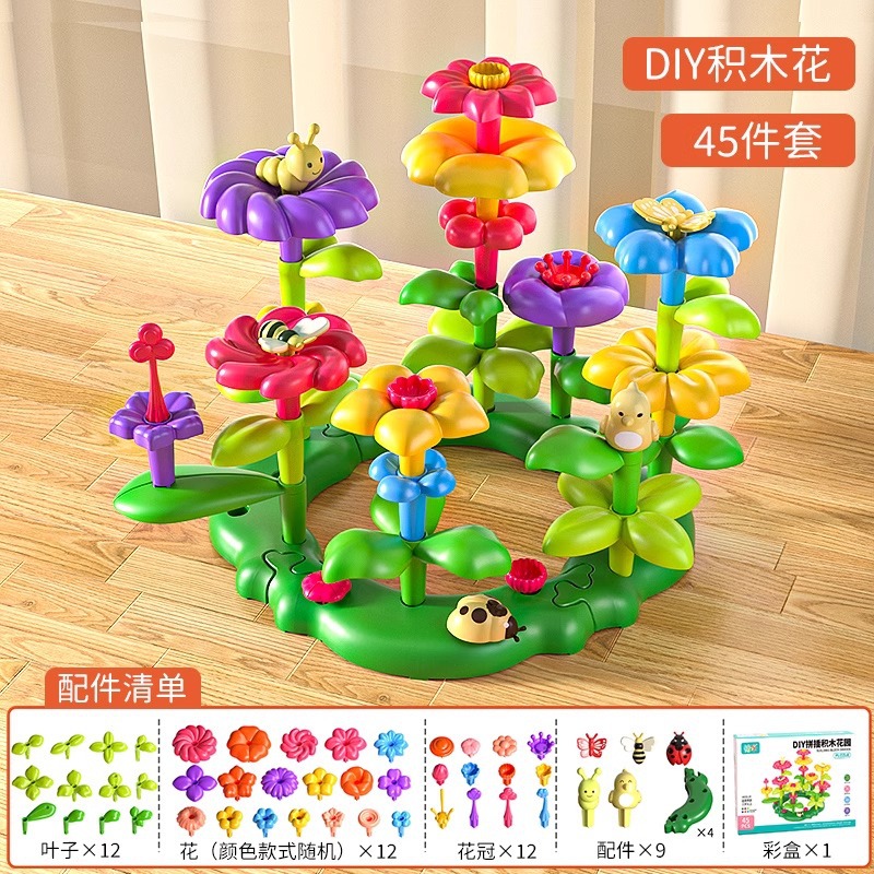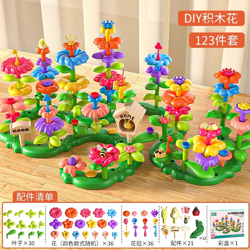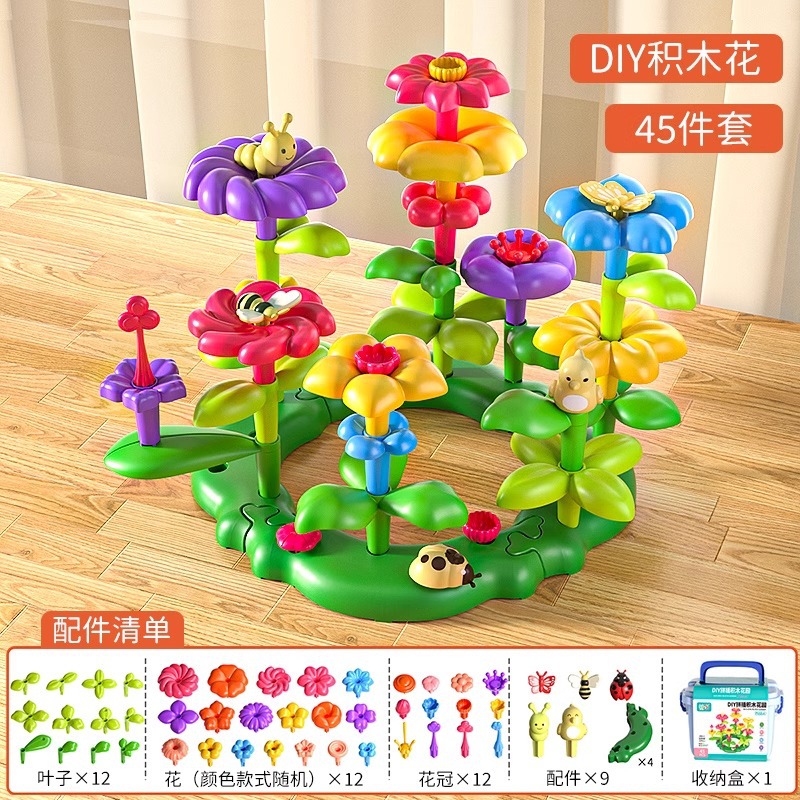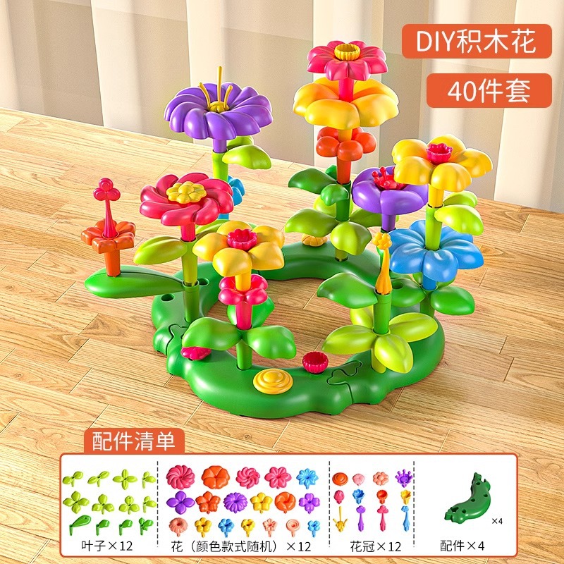 어린이 빌딩 블록 꽃 변화무쌍한 정원 조립 대형 입자 빌딩 블록 장난감 시뮬레이션 꽃 놀이 집 diy 수제 선물스토어 가기