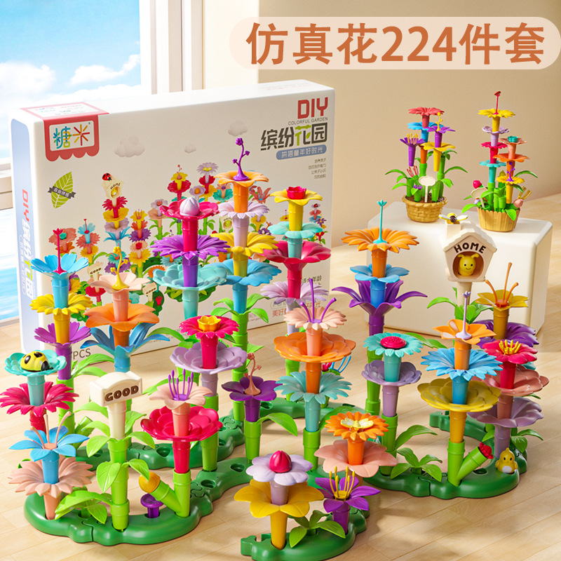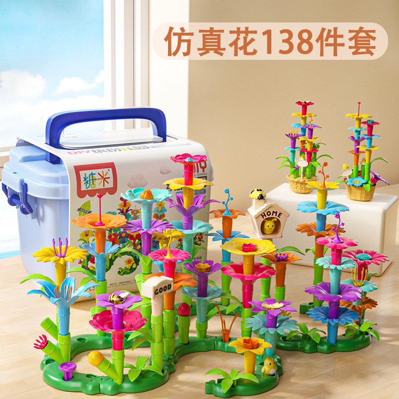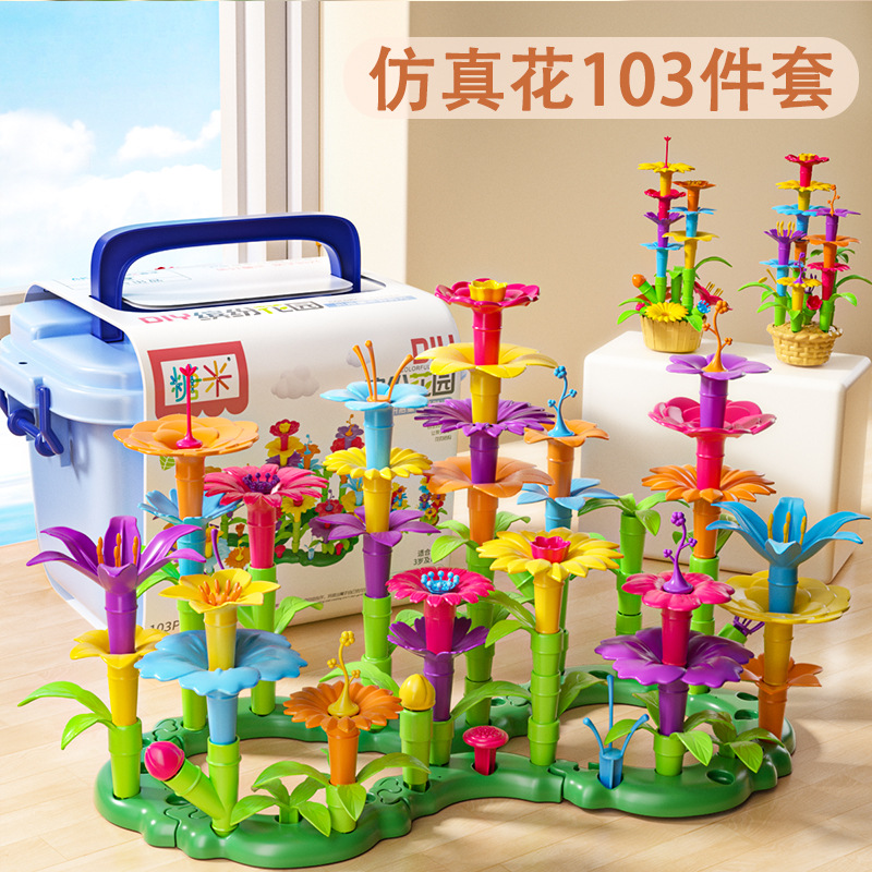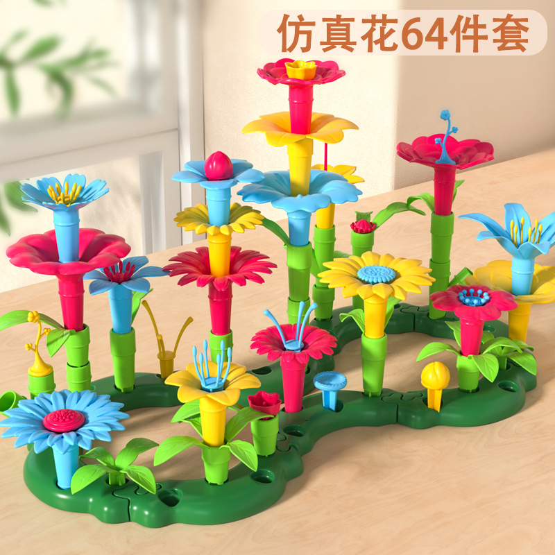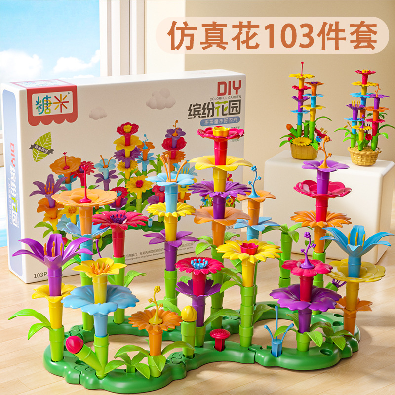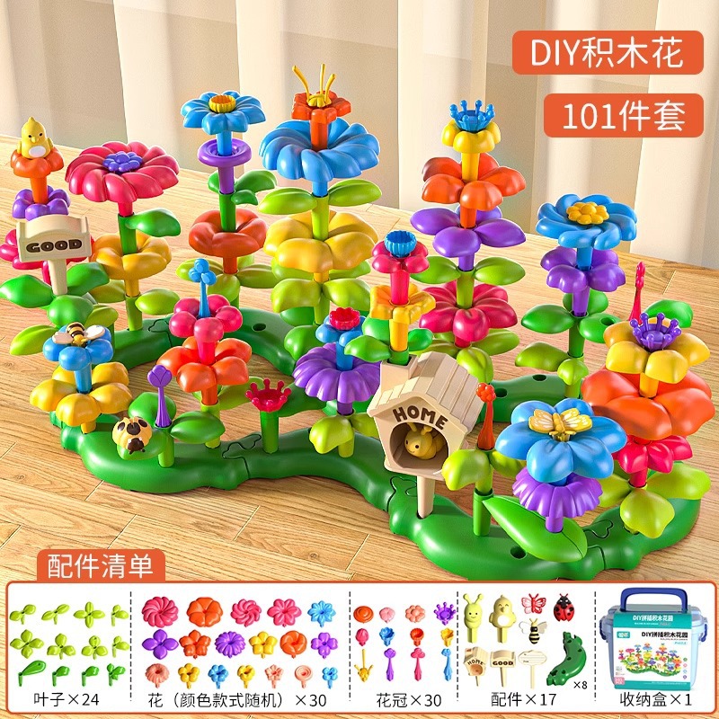 어린이 빌딩 블록 꽃 변화무쌍한 정원 조립 대형 입자 빌딩 블록 장난감 시뮬레이션 꽃 놀이 집 diy 수제 선물스토어 가기