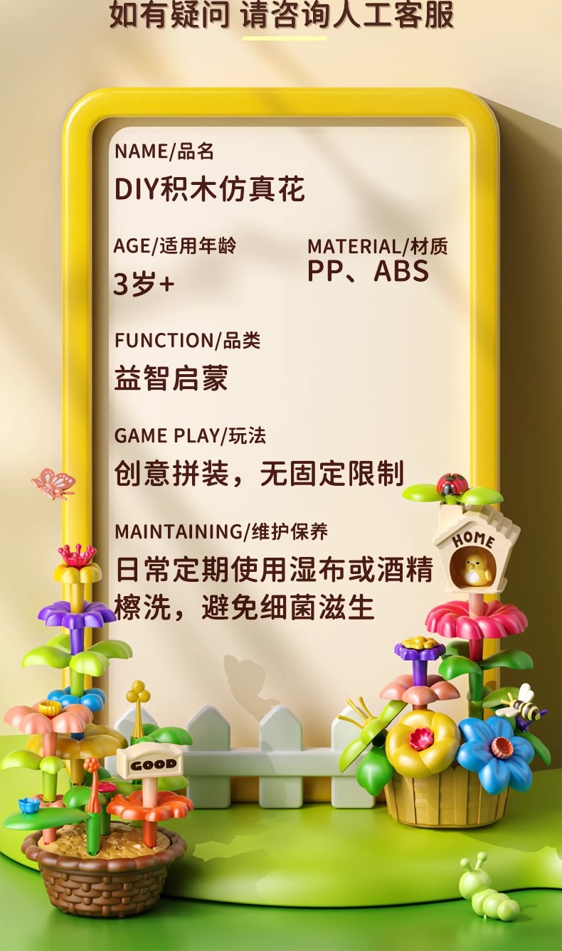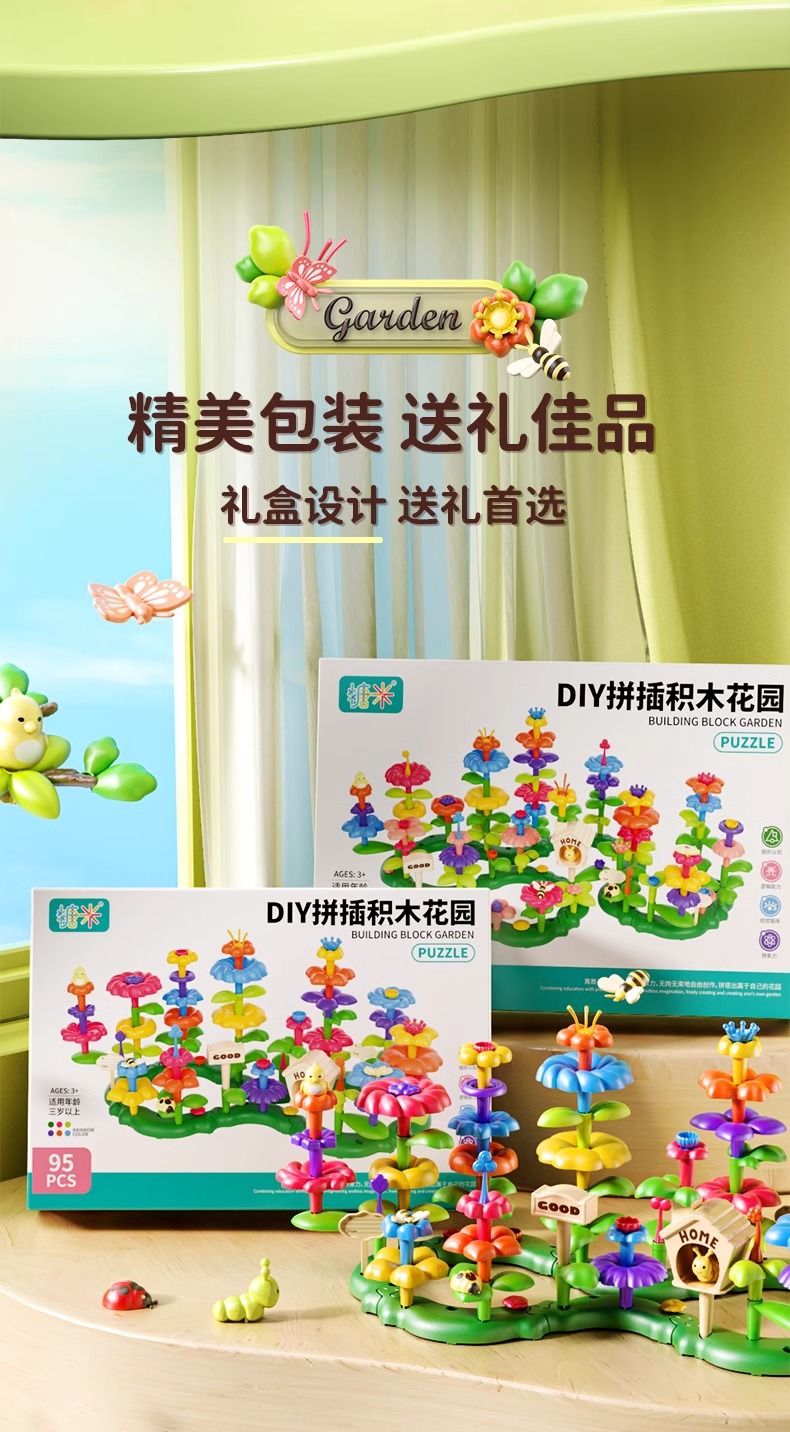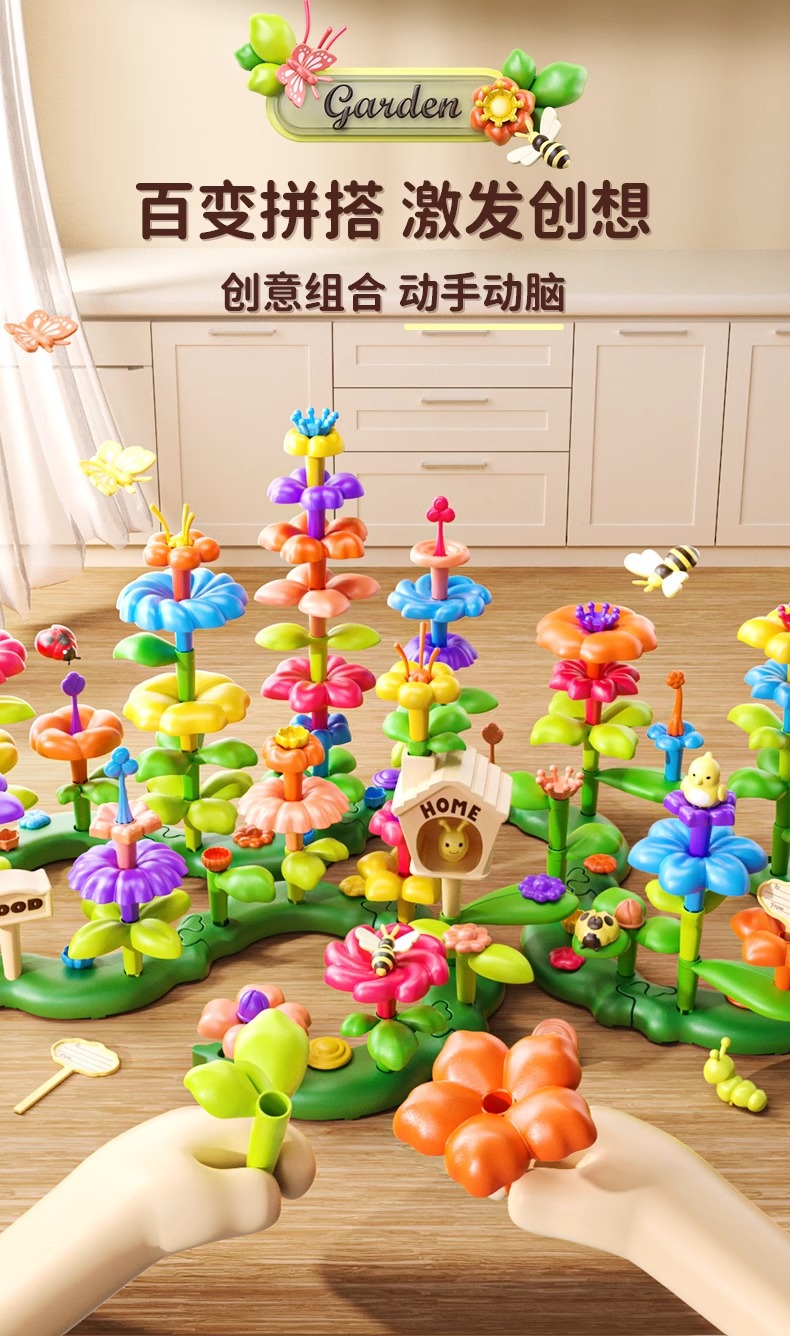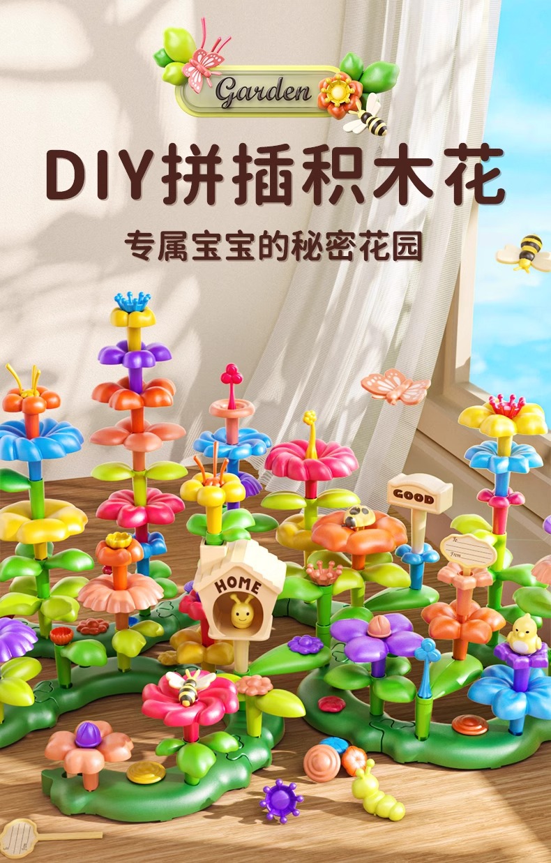 어린이 빌딩 블록 꽃 변화무쌍한 정원 조립 대형 입자 빌딩 블록 장난감 시뮬레이션 꽃 놀이 집 diy 수제 선물스토어 가기