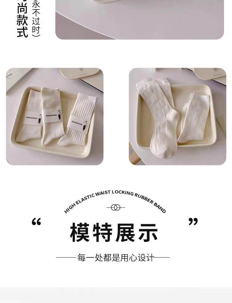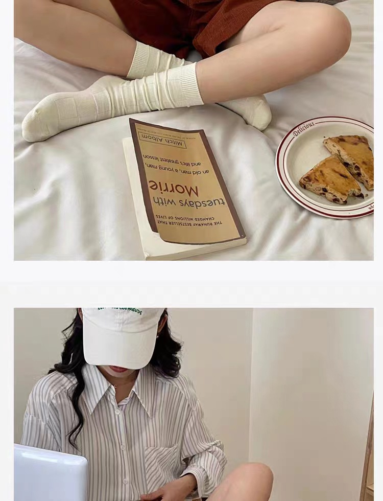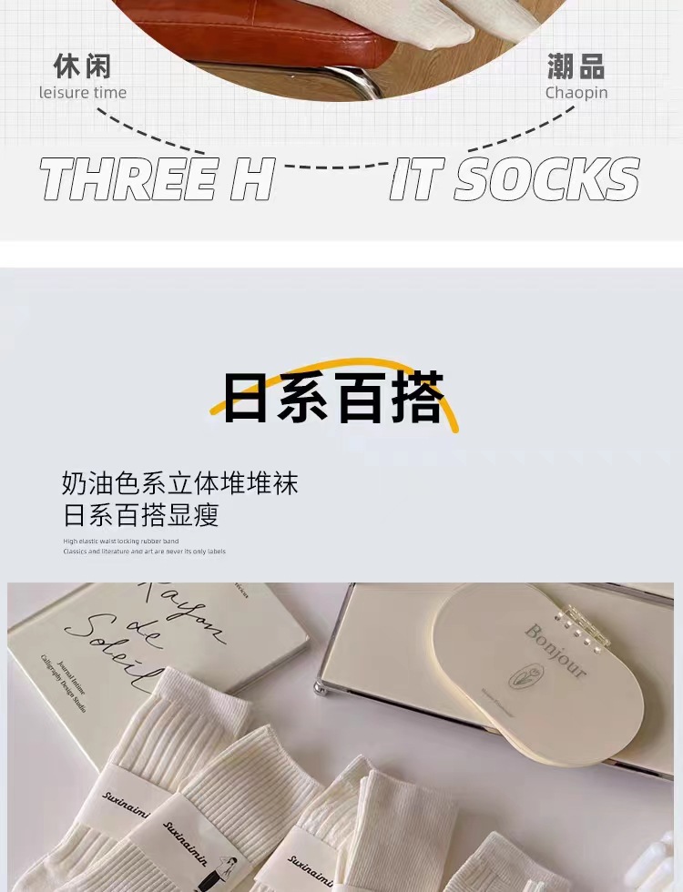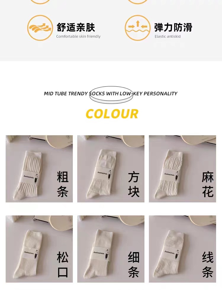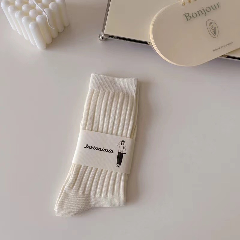 DingYan 절강 우물 가을과 겨울 크림 컬러 양말 여성용 세로 스트라이프 스택 트렌디 한 일본식 jk 스타일 미드 스타일 양말