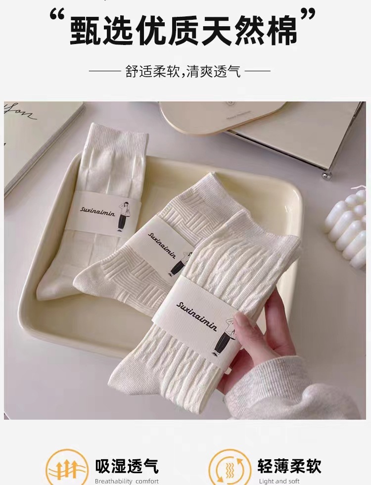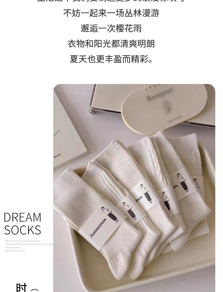 DingYan 절강 우물 가을과 겨울 크림 컬러 양말 여성용 세로 스트라이프 스택 트렌디 한 일본식 jk 스타일 미드 스타일 양말스토어 가기