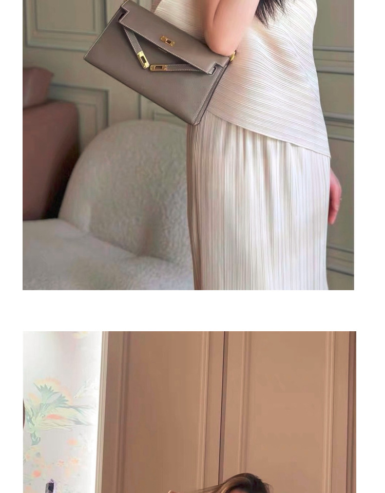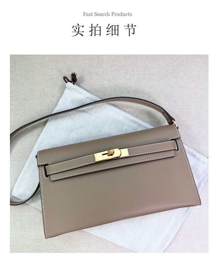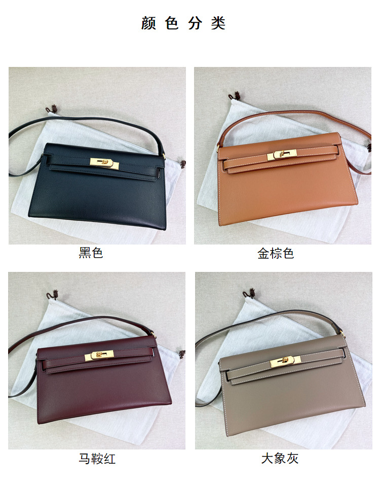 2023년 신상 고급스러운 가죽 염소 무늬 켈리 숄더백, 패셔너블하고 다용도로 활용 가능한 숄더/크로스바디/클러치백