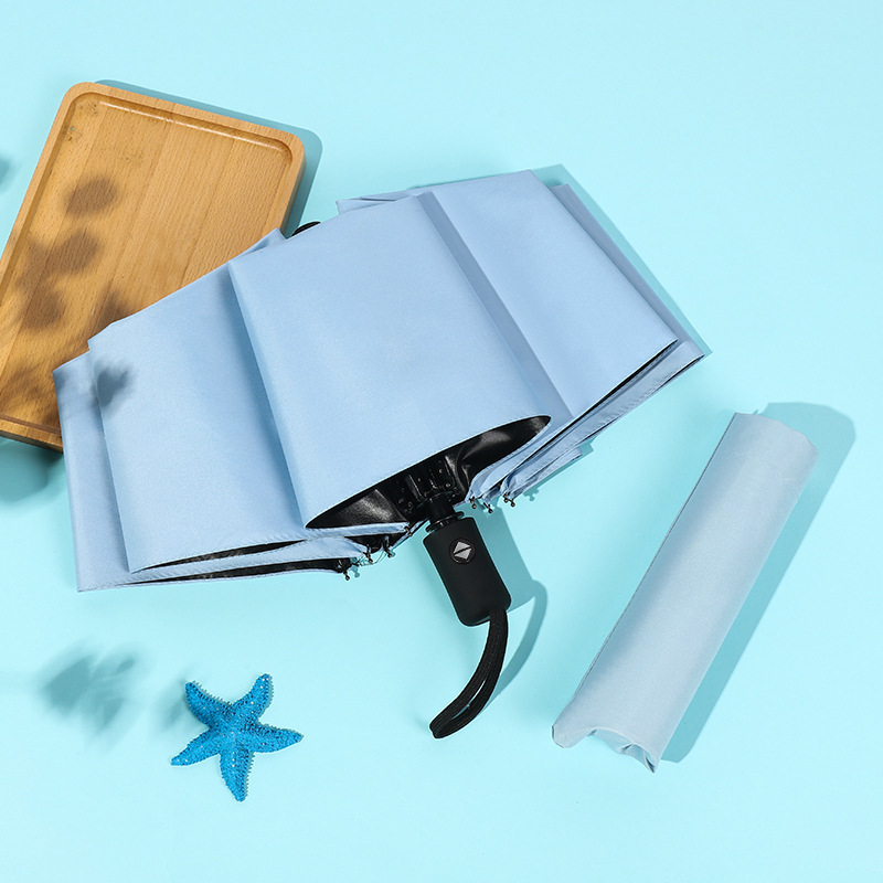 • 스카이 블루 8 본 자동 블랙 접착제 써니 우산