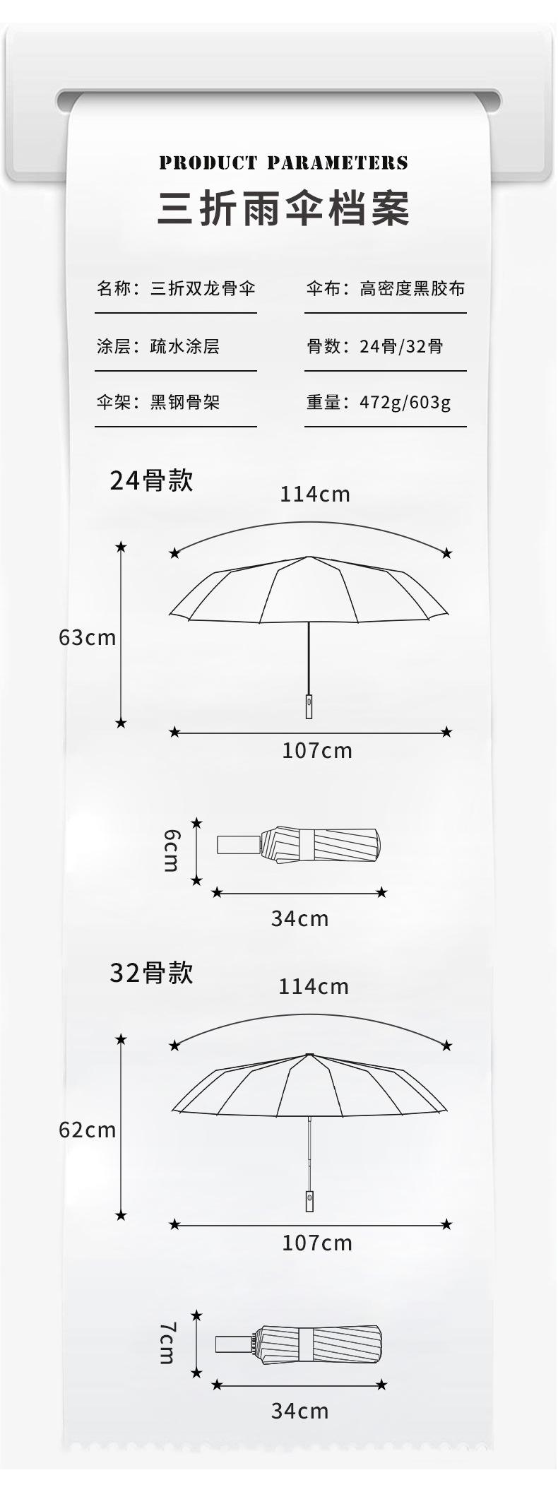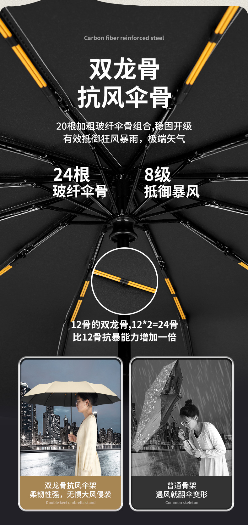 • 흑요석 블랙-24 뼈 자동 더블 드래곤 뼈 블랙 우산