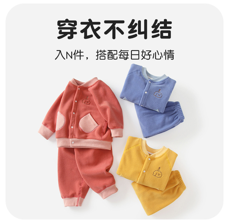 아기의 가을과 겨울 따뜻한 옷 올림픽 곡물 벨벳 두꺼운 기모 분할 세트 겉옷 아기의 가을 옷 남자와 여자의 분할 겨울 옷스토어 가기