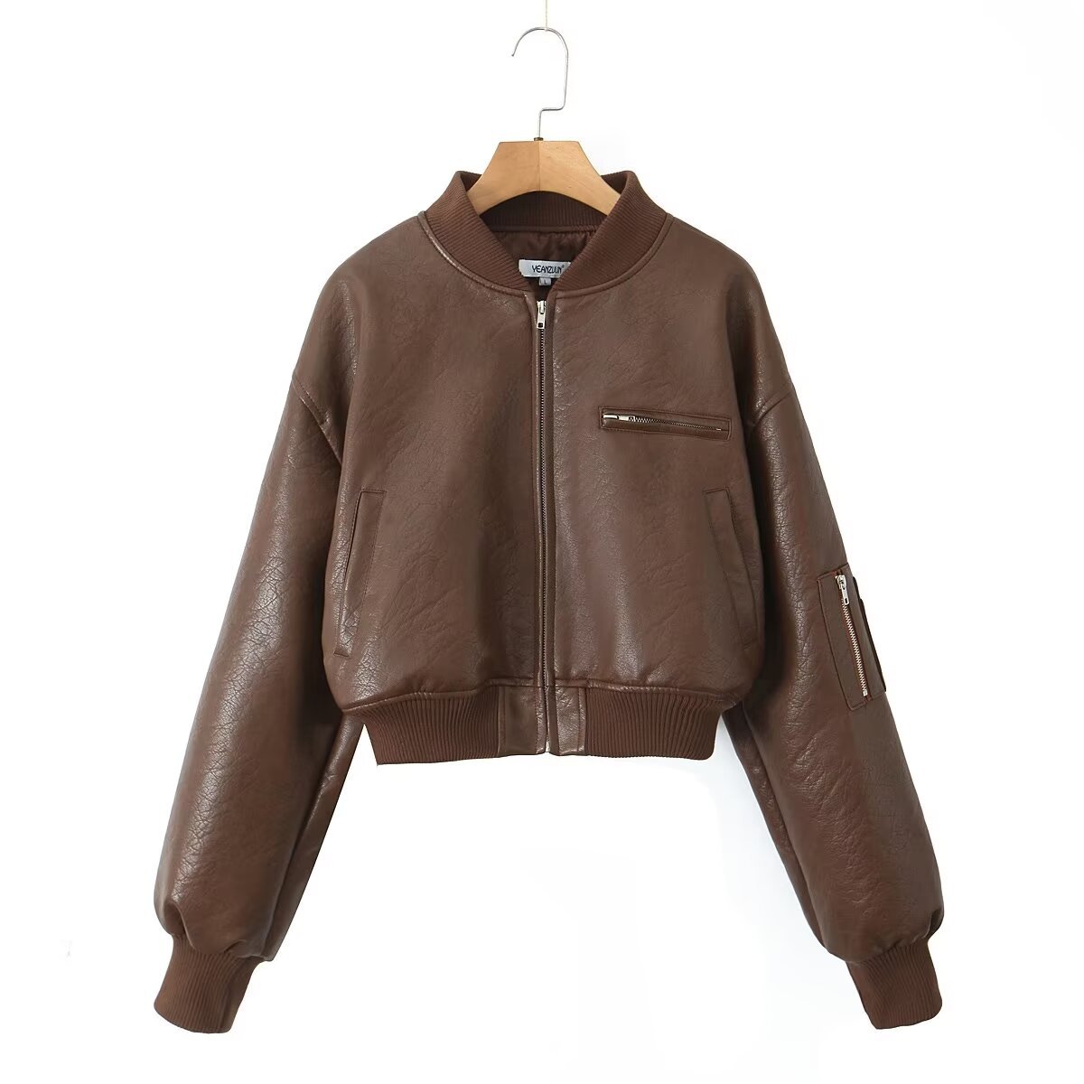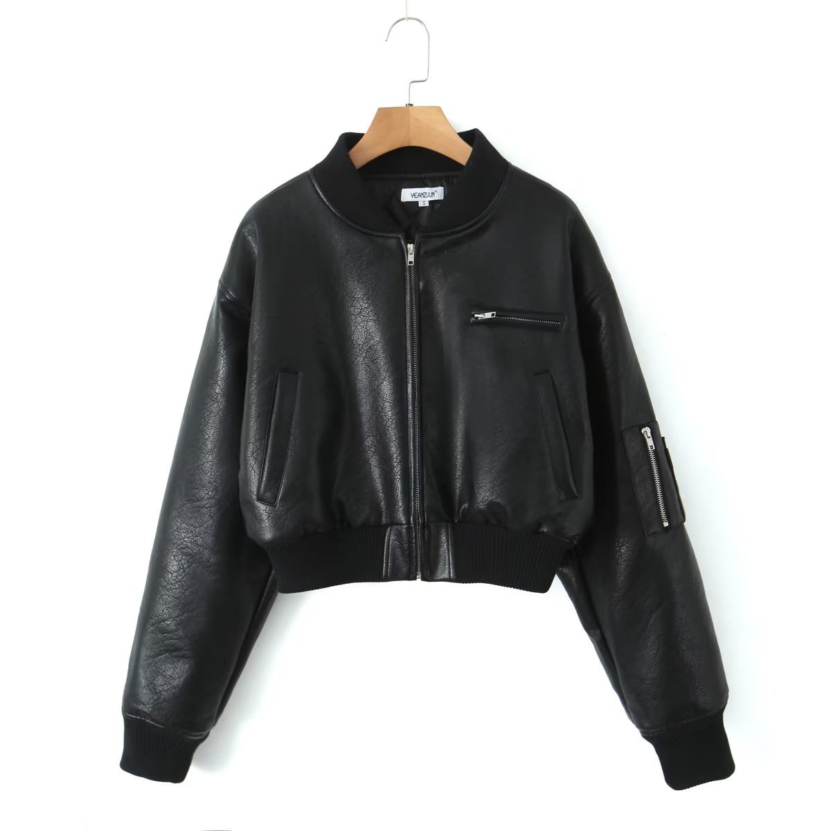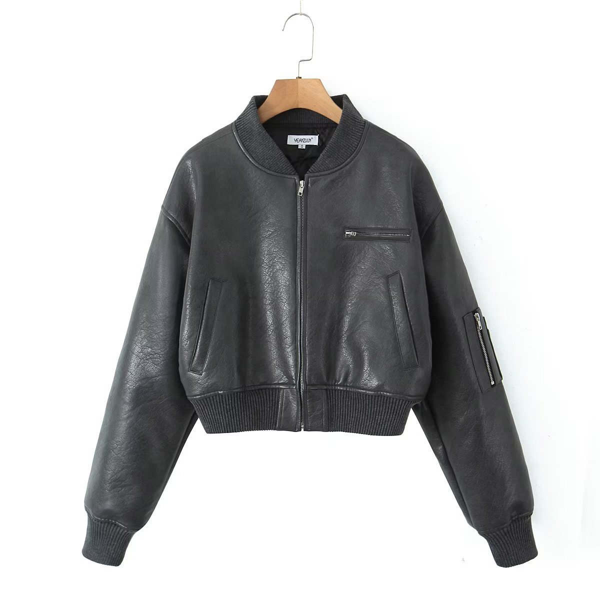 빈티지 PU 가죽과 면 재킷 코트 여자의 2023 가을과 겨울 향신료 소녀 세트 칼라 지퍼 짧은 야구 세트 재킷 탑스토어 가기