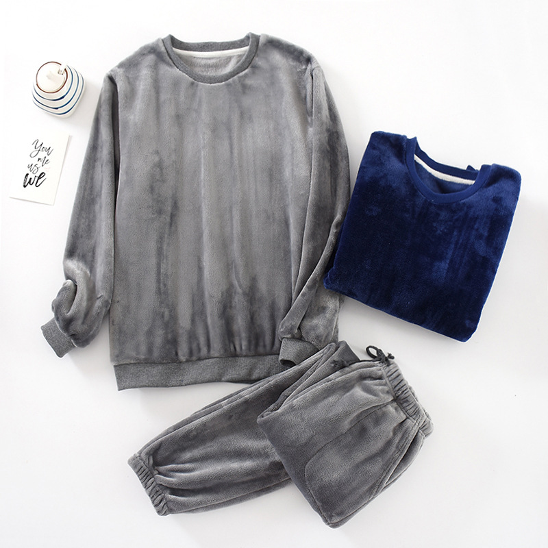 공장 도매 겨울 플란넬 잠옷 가정복 남자와 여자의 겉옷 커플 기모 두꺼운 캐주얼 세트스토어 가기