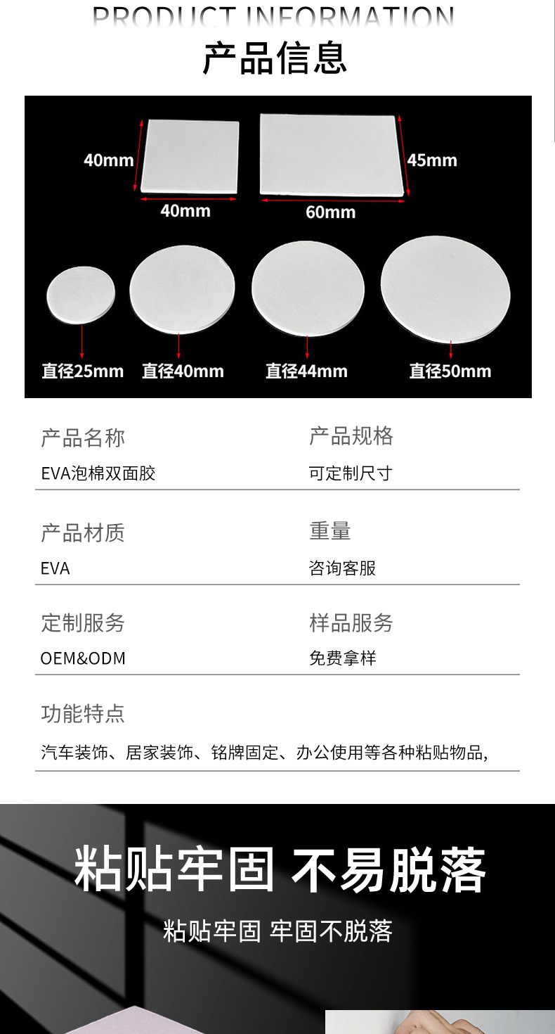 공장 직판 EVA 양면 폼 접착제 양면 테이프 1-10MM 두꺼운 검정색 흰색 폼 접착 패드스토어 가기